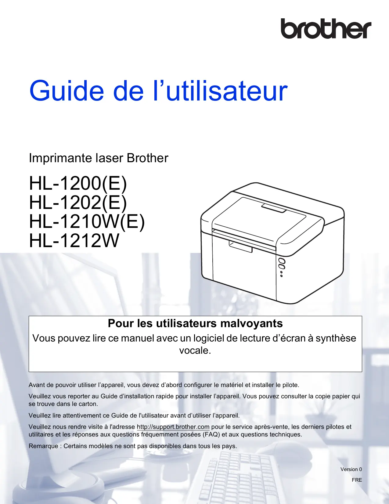 Veuillez nous rendre visite à l'adresse http://support.brother.com pour le service après-vente, les derniers pilotes et utilitaires et les réponses aux questions fréquemment posées (FAQ) et aux questions techniques.