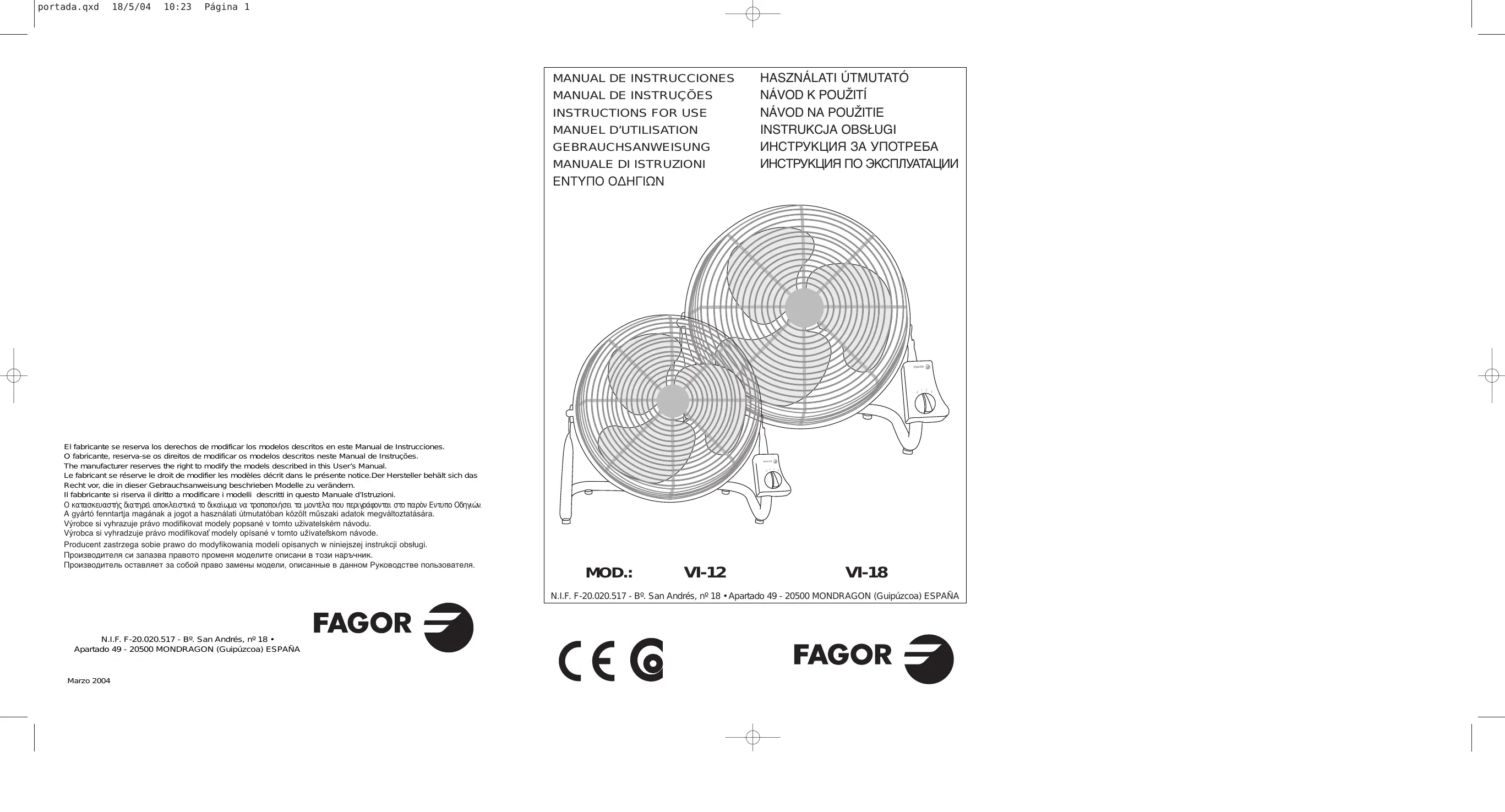 MODE D'EMPLOI VI-12 FAGOR