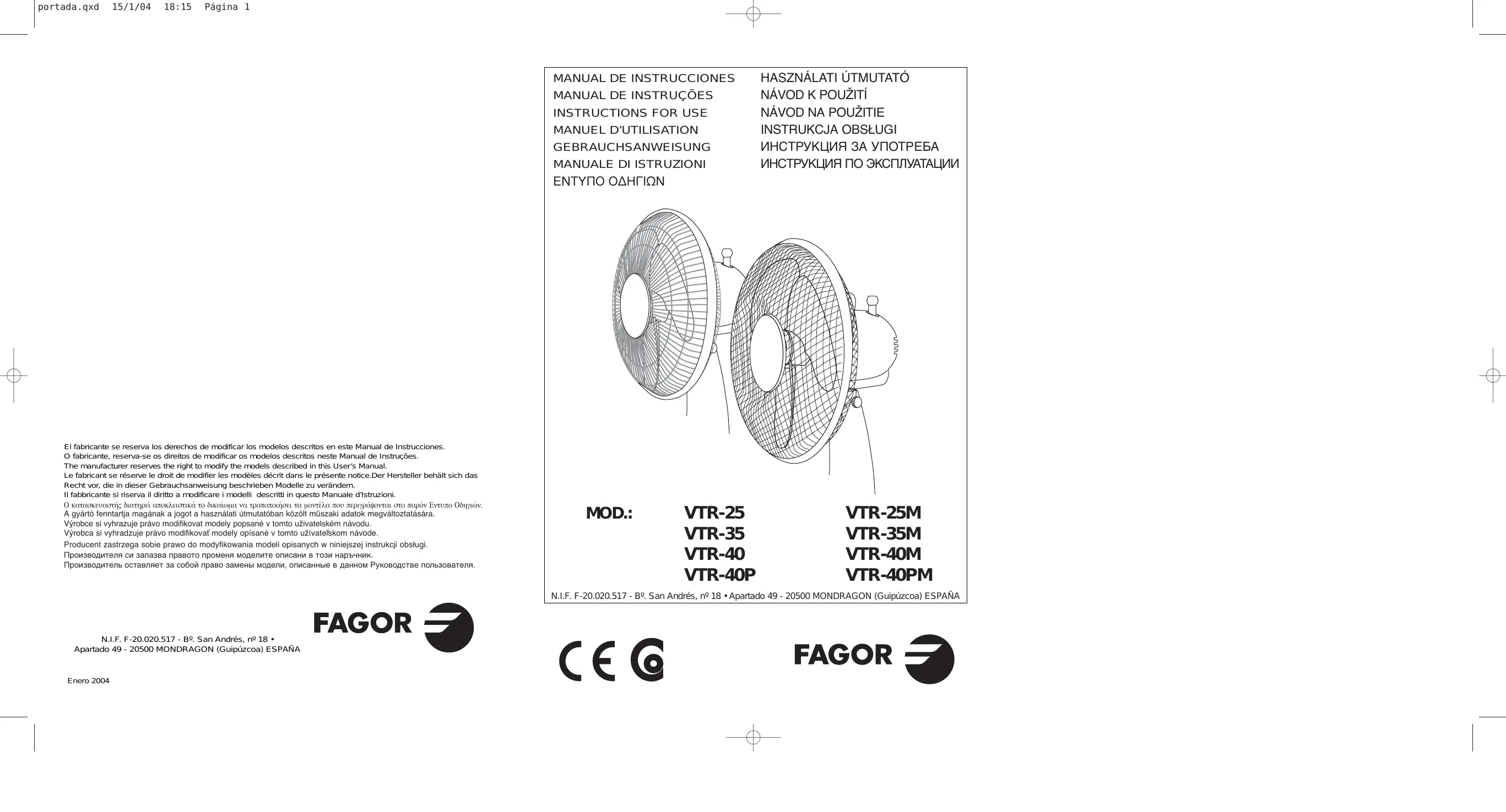 VTR-40PM - Ventilateur FAGOR - Notice d'utilisation et mode d'emploi gratuit