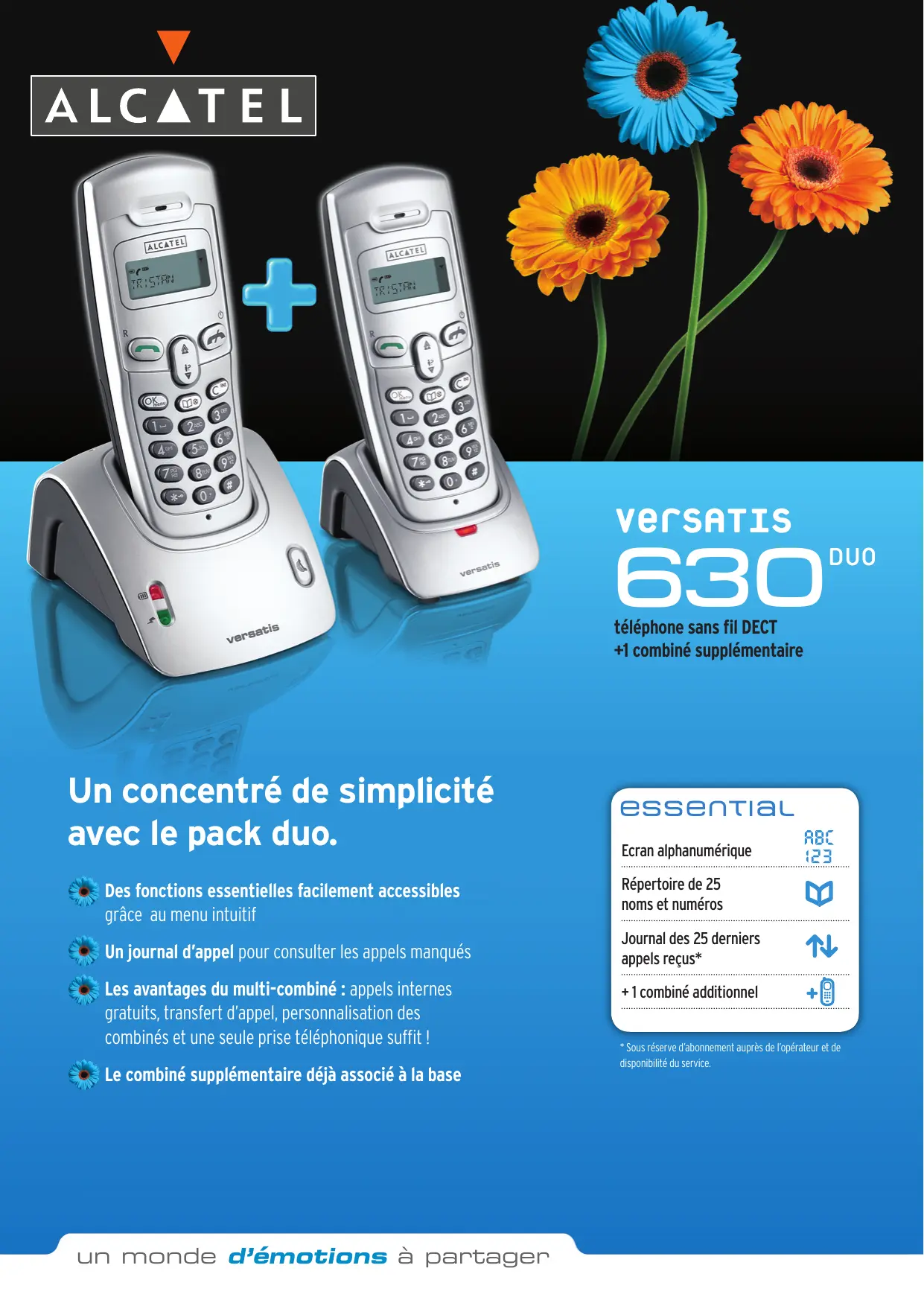 VERSATIS 630 DUO - Téléphone sans fil ALCATEL - Notice d'utilisation et mode d'emploi gratuit