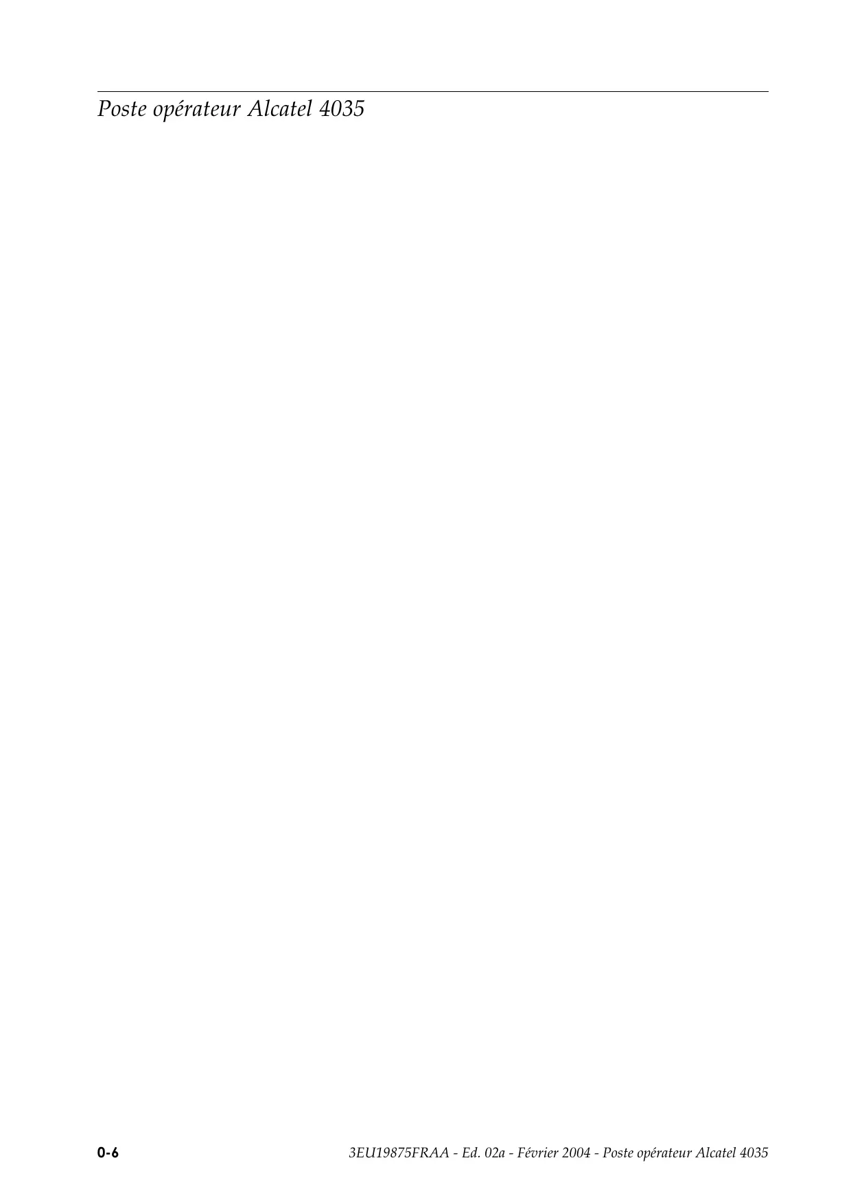 3EU19875FRAA - Ed. 02a - Février 2004 - Poste opérateur Alcatel 4035 0-5 Poste opérateur Alcatel 4035 0-6 3EU19875FRAA - Ed. 02a - Février 2004 - Poste opérateur Alcatel 4035 Chapitre