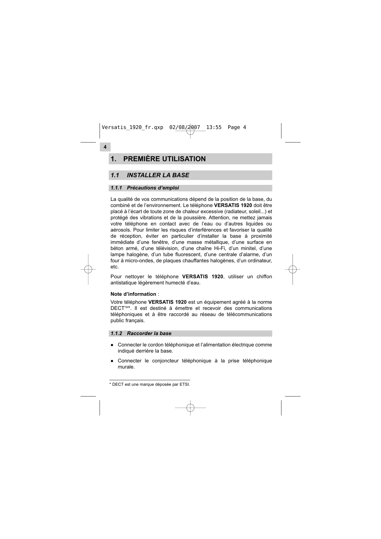 - DECT est une marque déposée par ETSI. Versatis_1920_fr.qxp 02/08/2007 13:55 Page 5