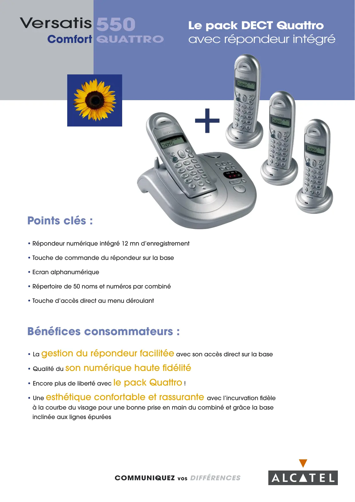 VERSATIS 550 QUATTRO COMFORT - Téléphone sans fil ALCATEL - Notice d'utilisation et mode d'emploi gratuit