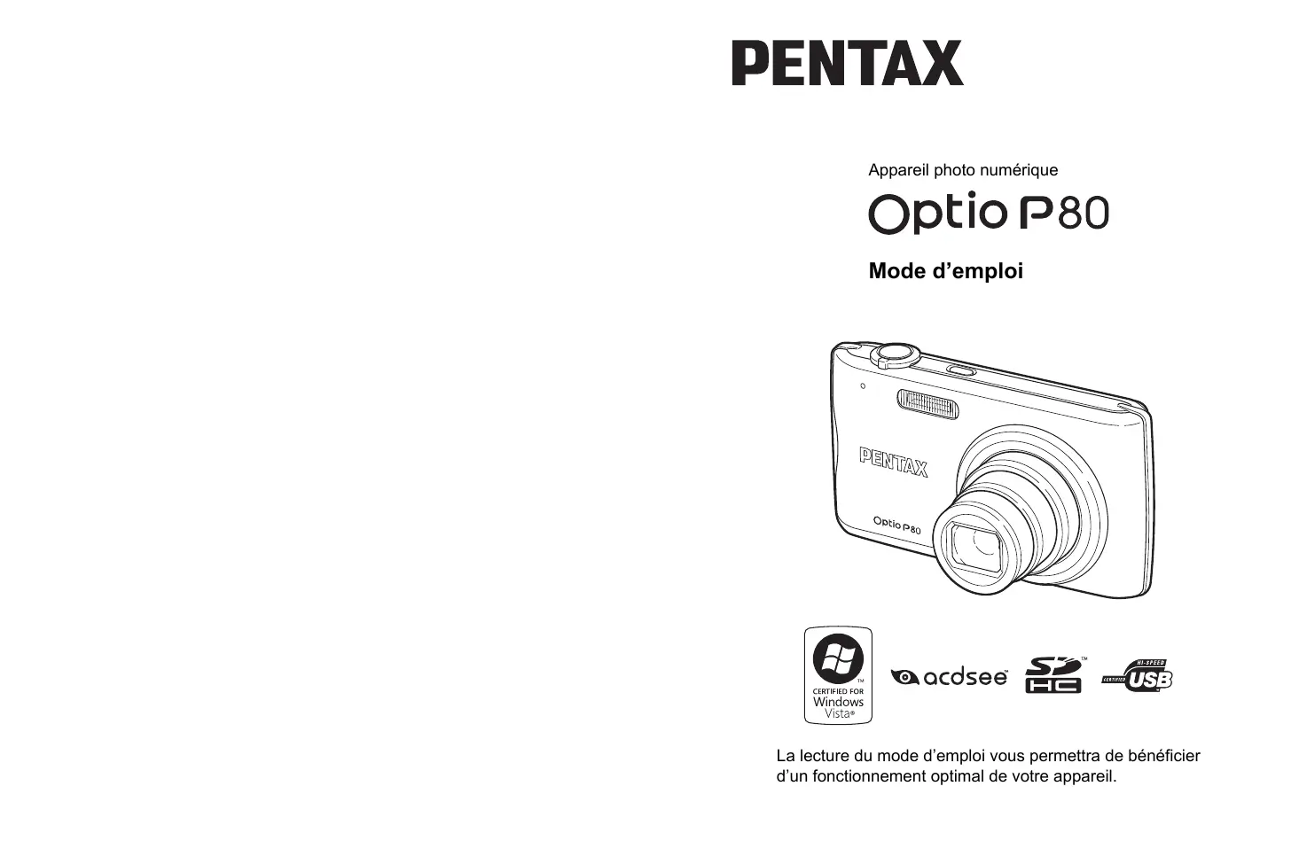 Retrouvez gratuitement la notice de l'appareil OPTIO P80 PENTAX au format PDF.