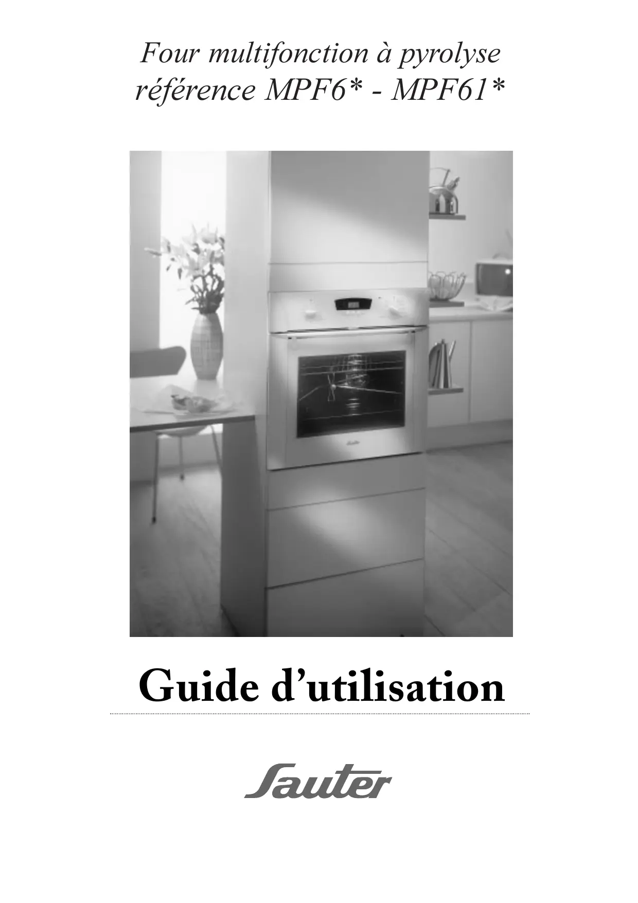 Four multifonction à pyrolyse référence MPF6* - MPF61* Guide d’utilisation “Madame, Monsieur, Vous venez d’acquérir un appareil de la marque SAUTER et nous vous remercions de votre confiance. Nous vous recommandons de lire très attentivement ce guide d’utilisation. Nous sommes sûrs qu’ainsi vous serez entièrement satisfaits de votre appareil pour de longues années. Nous restons à votre disposition pour tout renseignement complémentaire et vous pouvez nous contacter : en consultant le 36.15 SAUTER ( 0,197 la minute )àtarif en vigueur à la date d’impression du document. ( demande de catalogues, conseils pratiques, adresses diverses ) en écrivant au Service Consommateurs SAUTER BP 9526