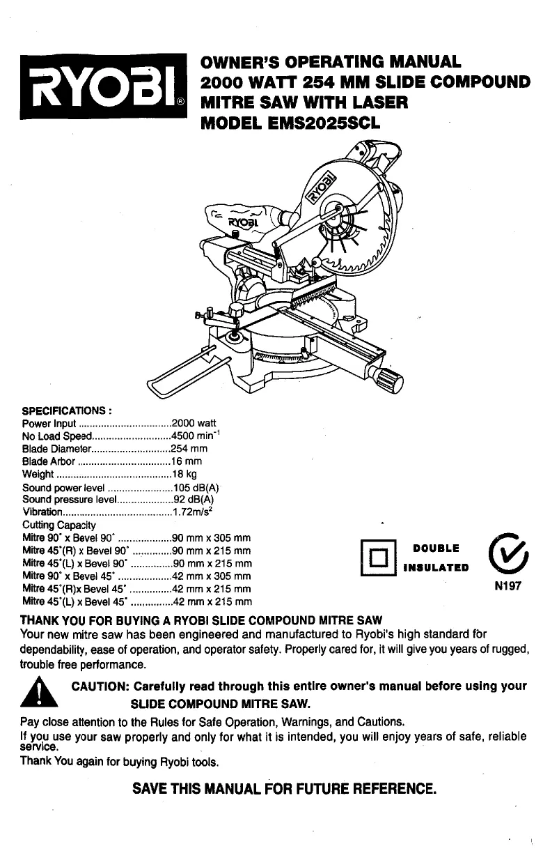 Retrouvez gratuitement la notice de l'appareil EMS2025SCL RYOBI au format PDF.