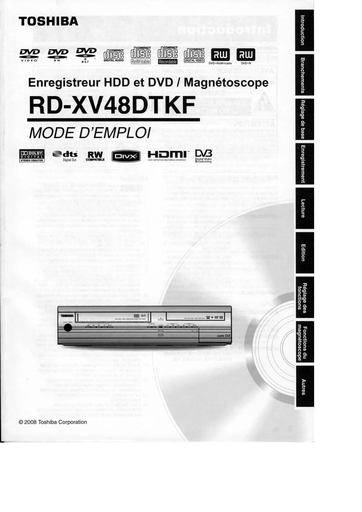 RD-XV48DTKF - Enregistreur DVD TOSHIBA - Notice d'utilisation et mode d'emploi gratuit