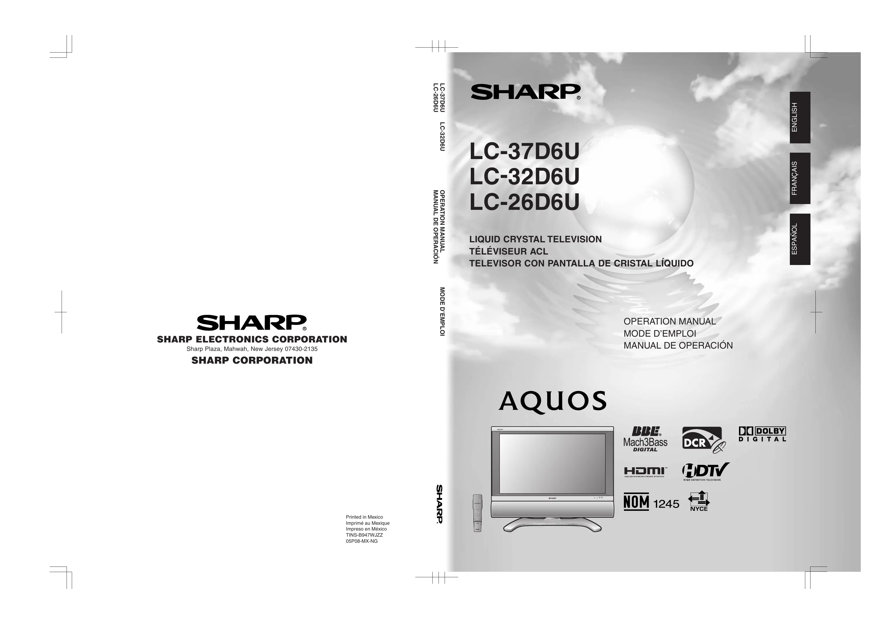 Retrouvez gratuitement la notice de l'appareil LC-32D6U SHARP au format PDF.