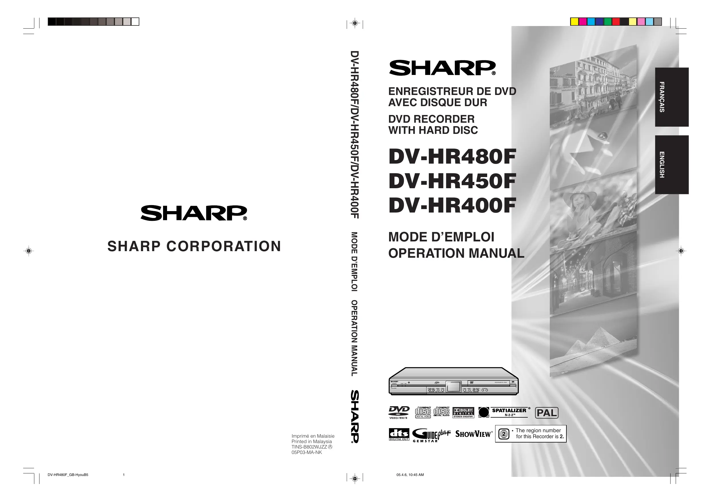 Retrouvez gratuitement la notice de l'appareil DV-HR450F SHARP au format PDF.