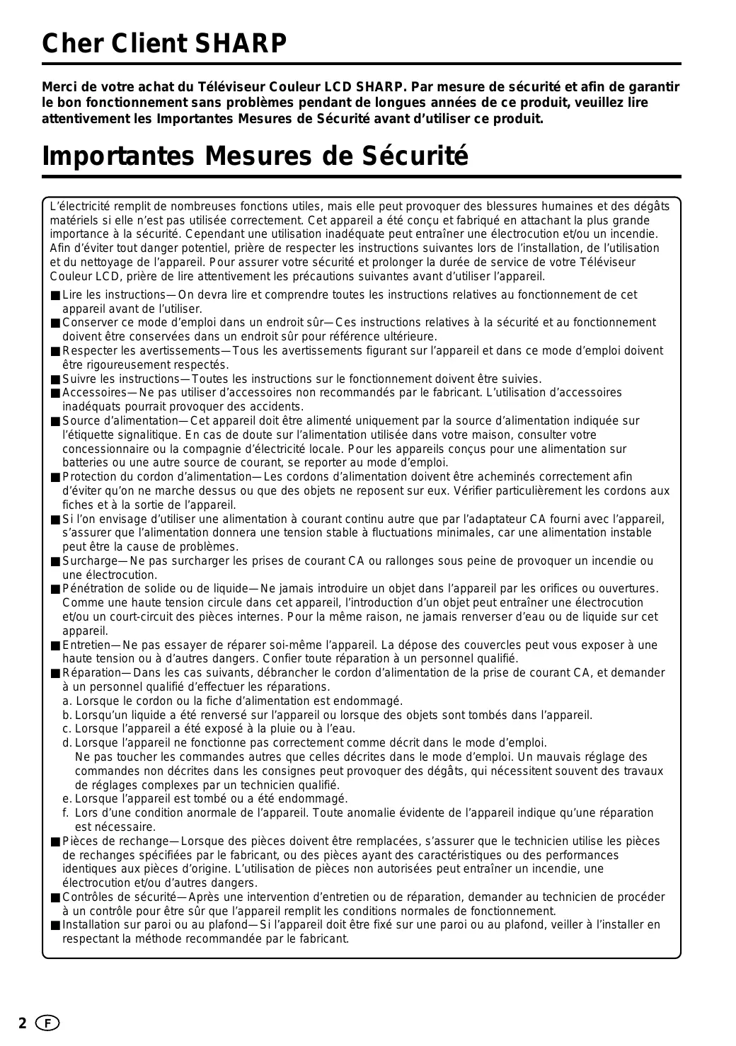 MODE D'EMPLOI LC-15B2EA SHARP