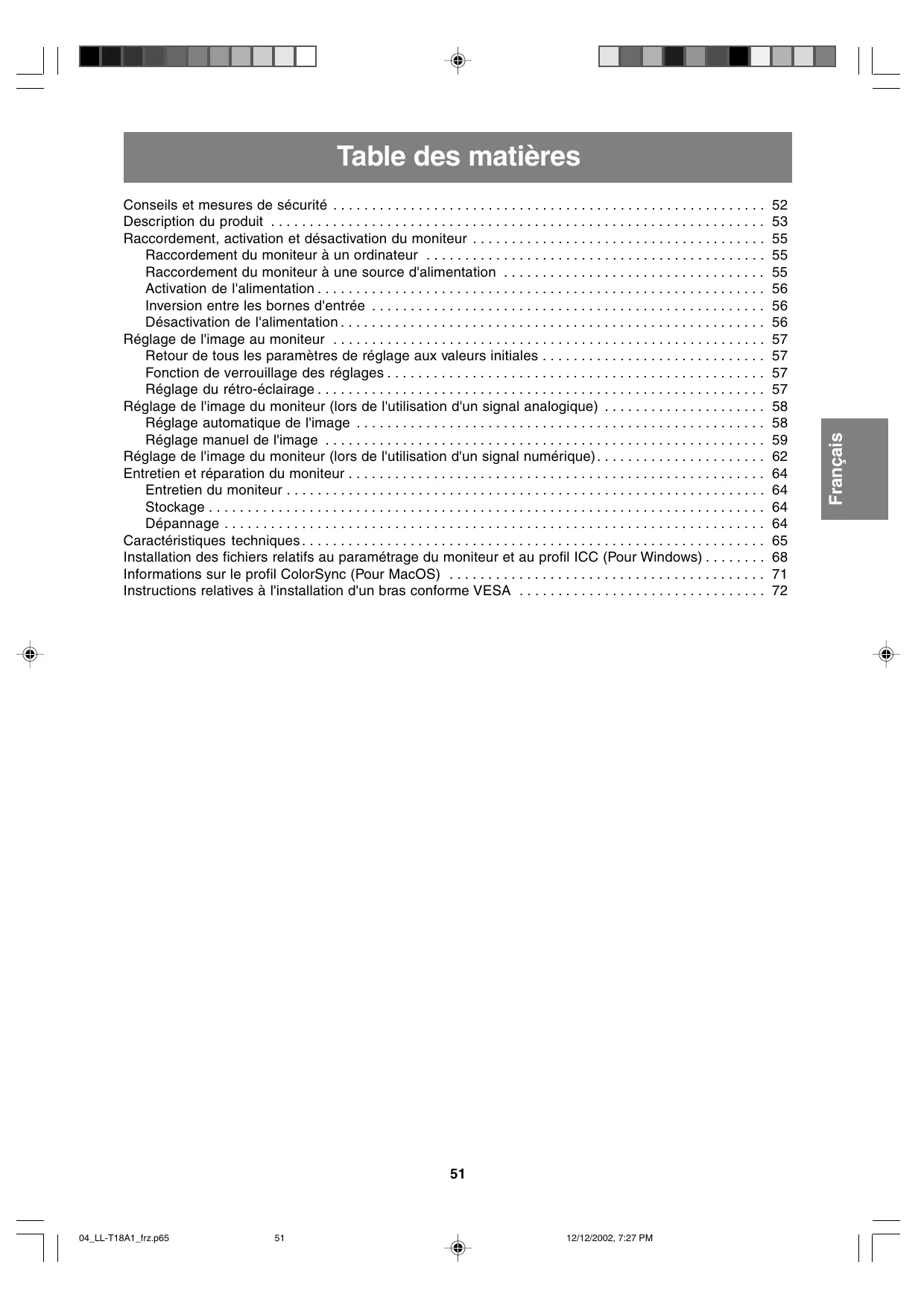 12/12/2002, 7:27 PM Raccordement, activation et désactivation du moniteur