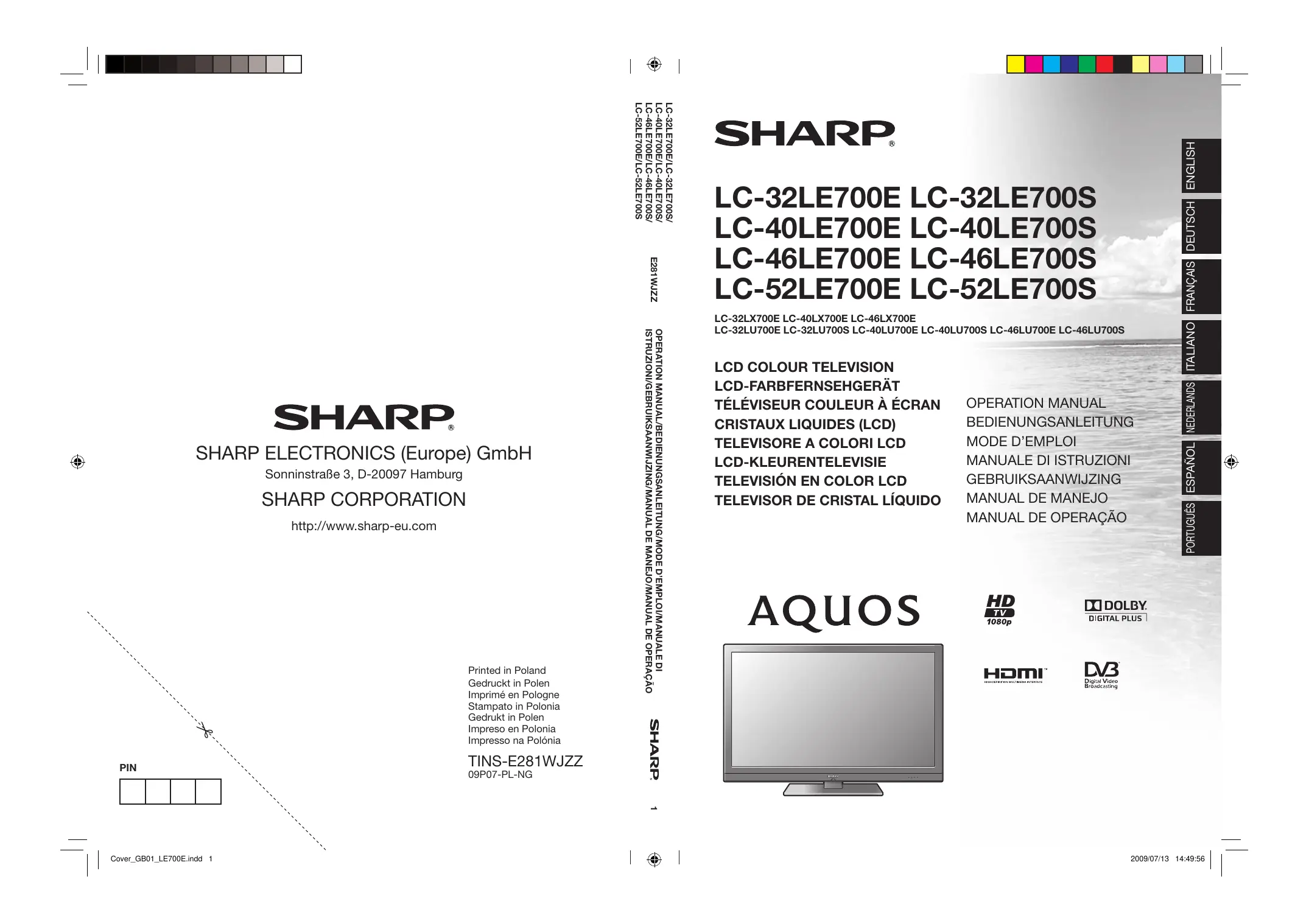 Retrouvez gratuitement la notice de l'appareil LC-52LE700S SHARP au format PDF.
