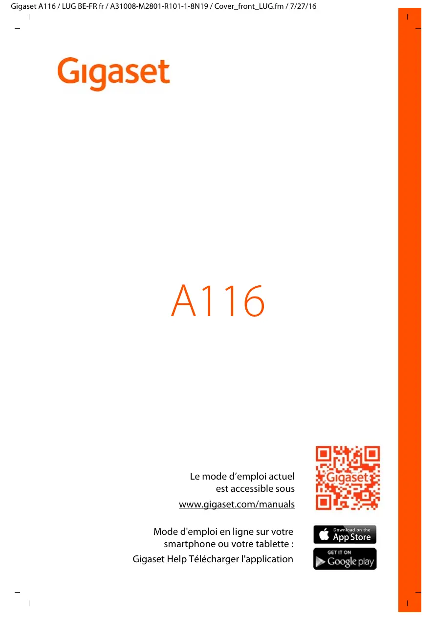 Téléchargez la notice de votre Téléphone fixe sans fil au format PDF gratuitement ! Retrouvez votre notice A116 - GIGASET et reprennez votre appareil électronique en main. Sur cette page sont publiés tous les documents nécessaires à l'utilisation de votre appareil A116 de la marque GIGASET.