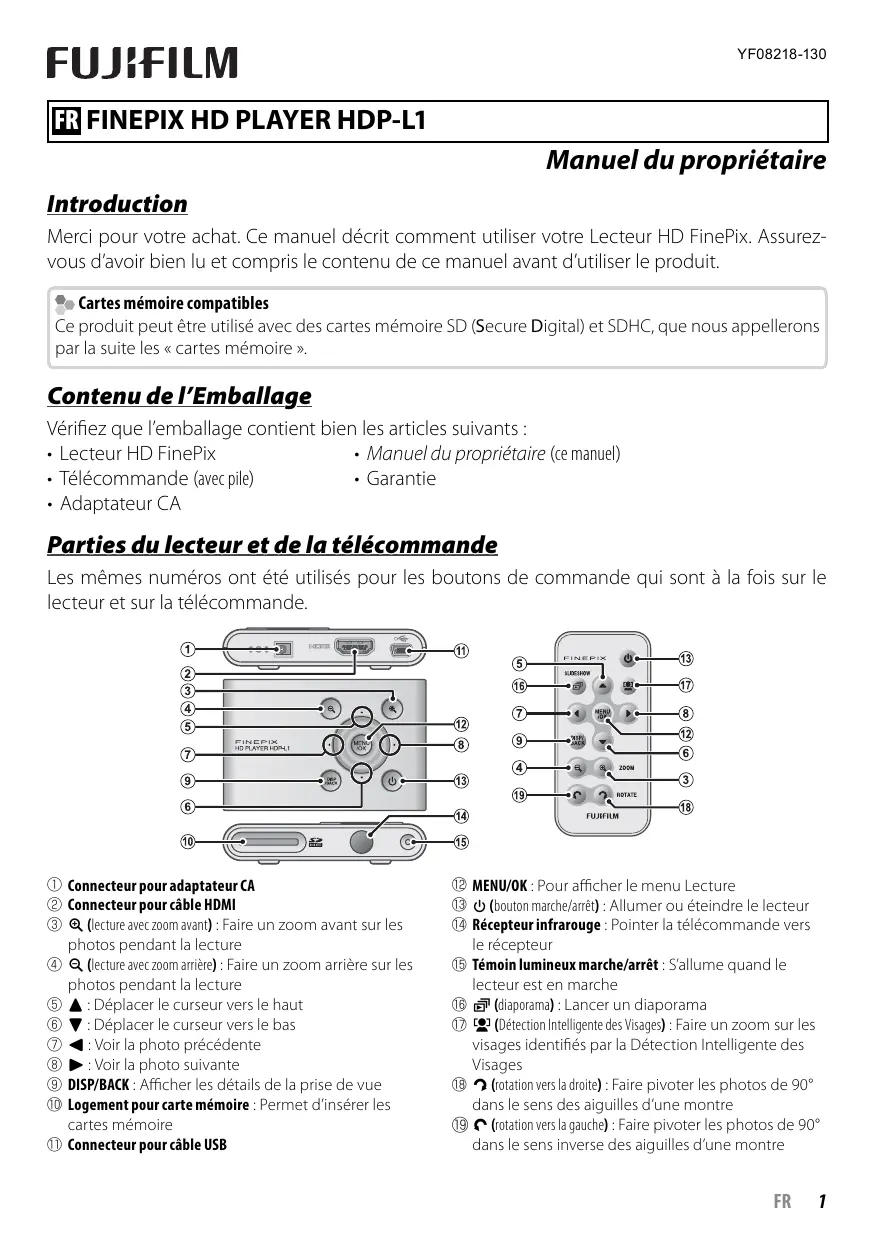 FINEPIX HD PLAYER HDP-L1 - Lecteur multimédia FUJIFILM - Notice d'utilisation et mode d'emploi gratuit
