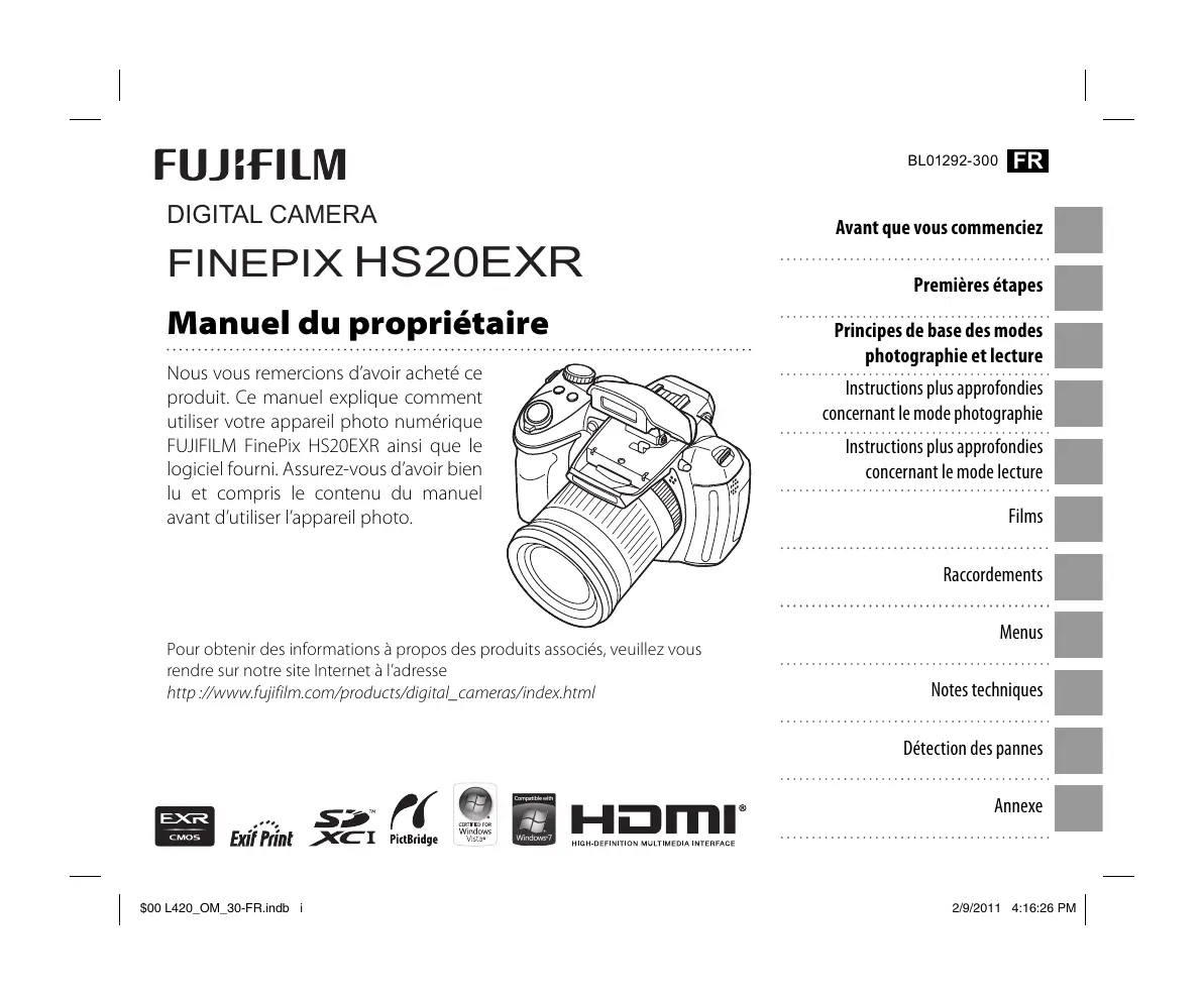 Téléchargez la notice de votre Appareil photo numérique au format PDF gratuitement ! Retrouvez votre notice FINEPIX HS20EXR - FUJIFILM et reprennez votre appareil électronique en main. Sur cette page sont publiés tous les documents nécessaires à l'utilisation de votre appareil FINEPIX HS20EXR de la marque FUJIFILM.