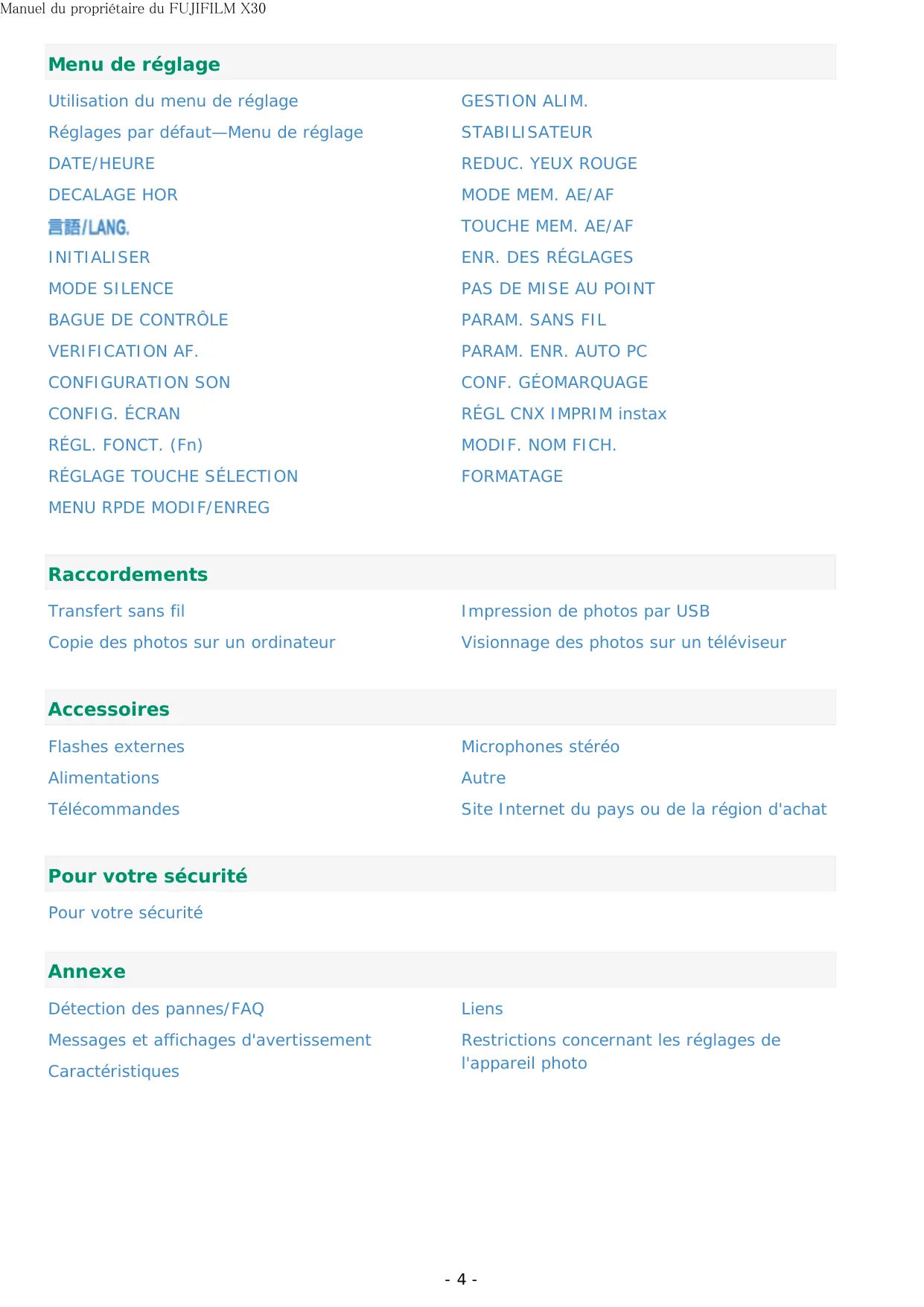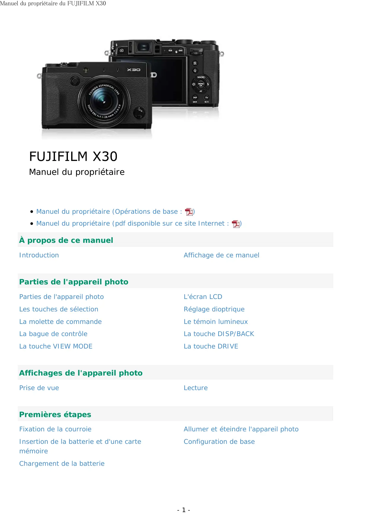 Retrouvez gratuitement la notice de l'appareil X30 FUJIFILM au format PDF.
