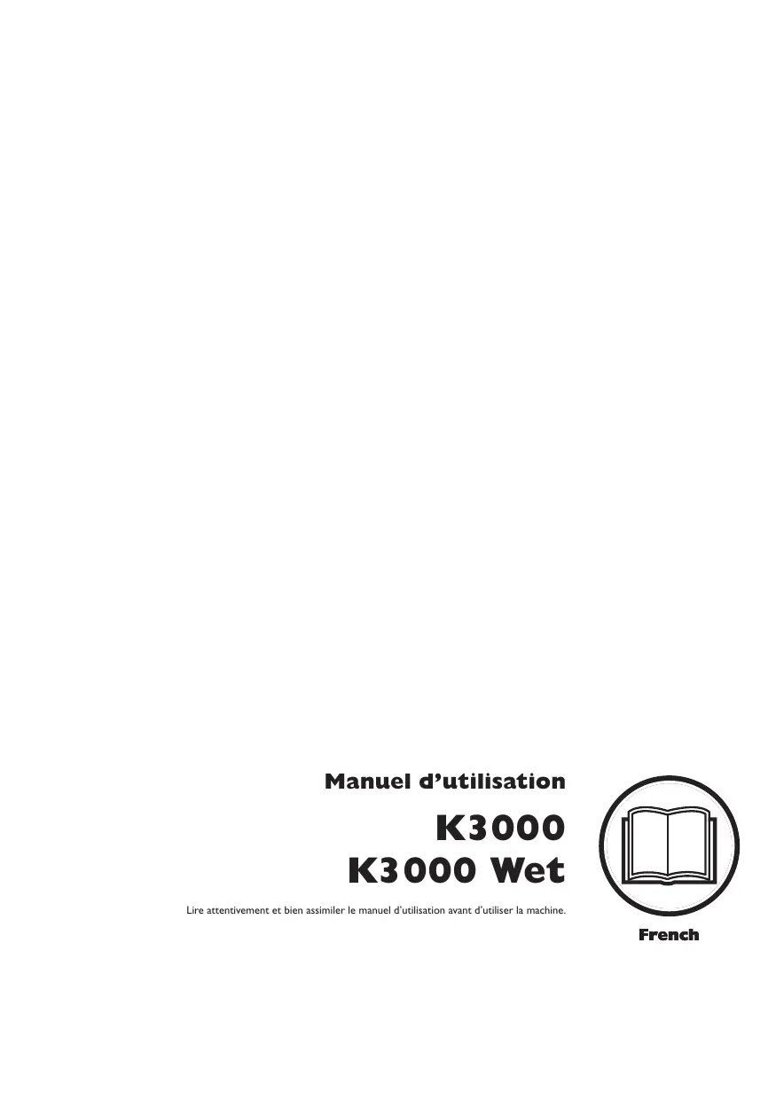 Manuel d’utilisation K3000 K3000 Wet Lire attentivement et bien assimiler le manuel d’utilisation avant d’utiliser la machine. French