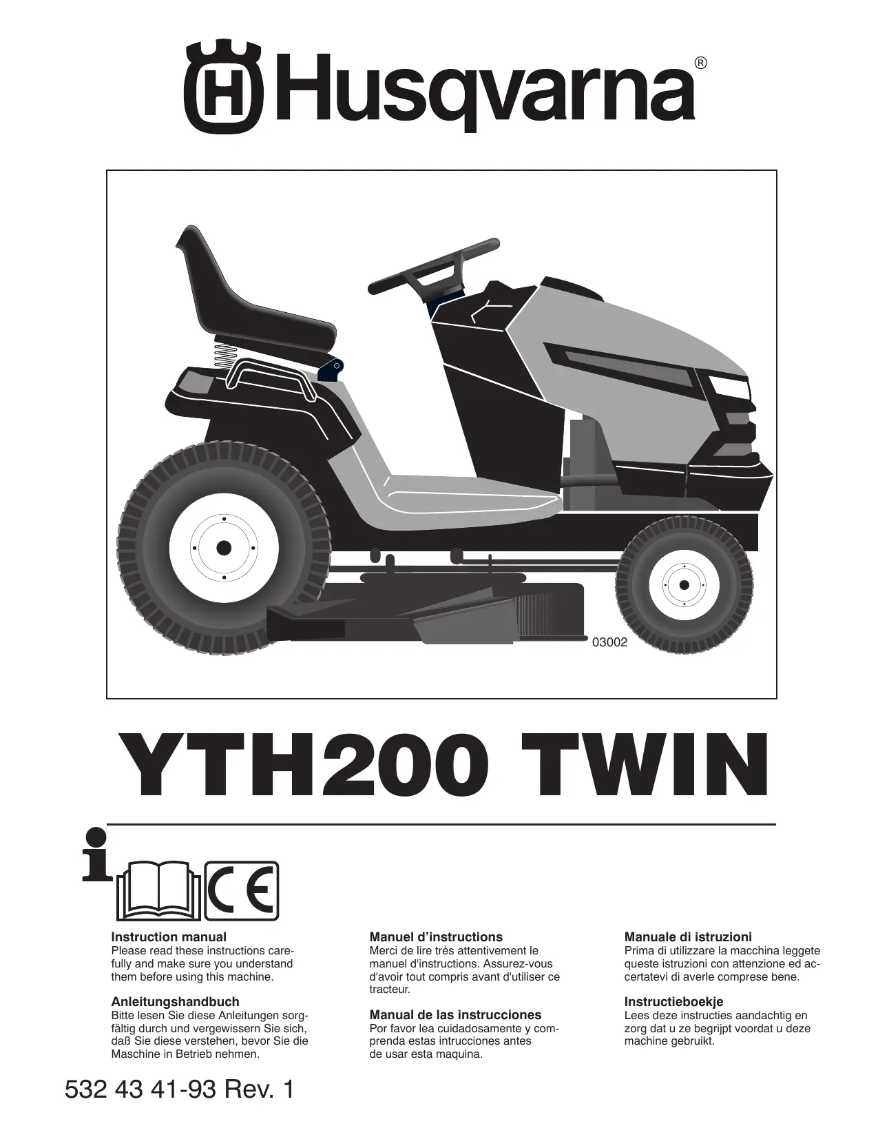 Retrouvez gratuitement la notice de l'appareil YTH200 TWIN HUSQVARNA au format PDF.