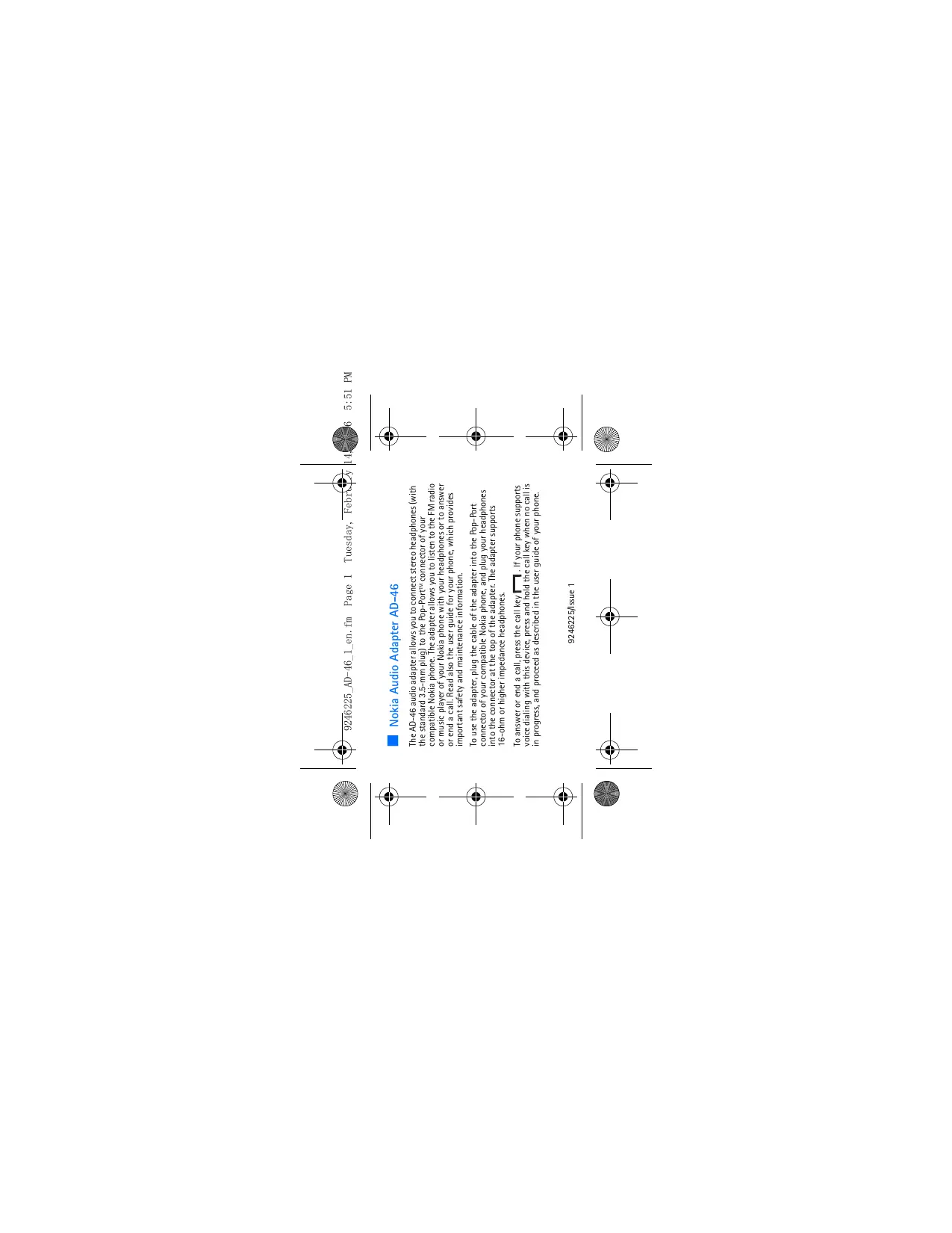 AUDIO ADAPTER AD-46 - Adaptateur audio NOKIA - Notice d'utilisation et mode d'emploi gratuit