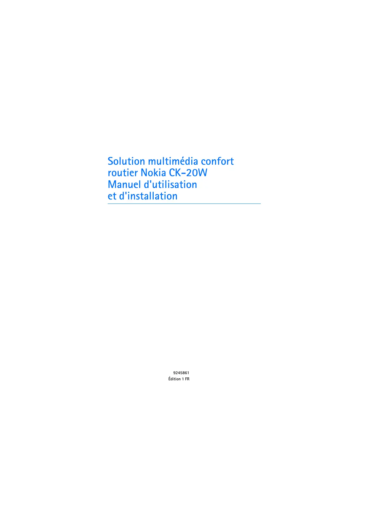 Solution multimédia confort routier Nokia CK-20W Manuel d'utilisation et d'installation