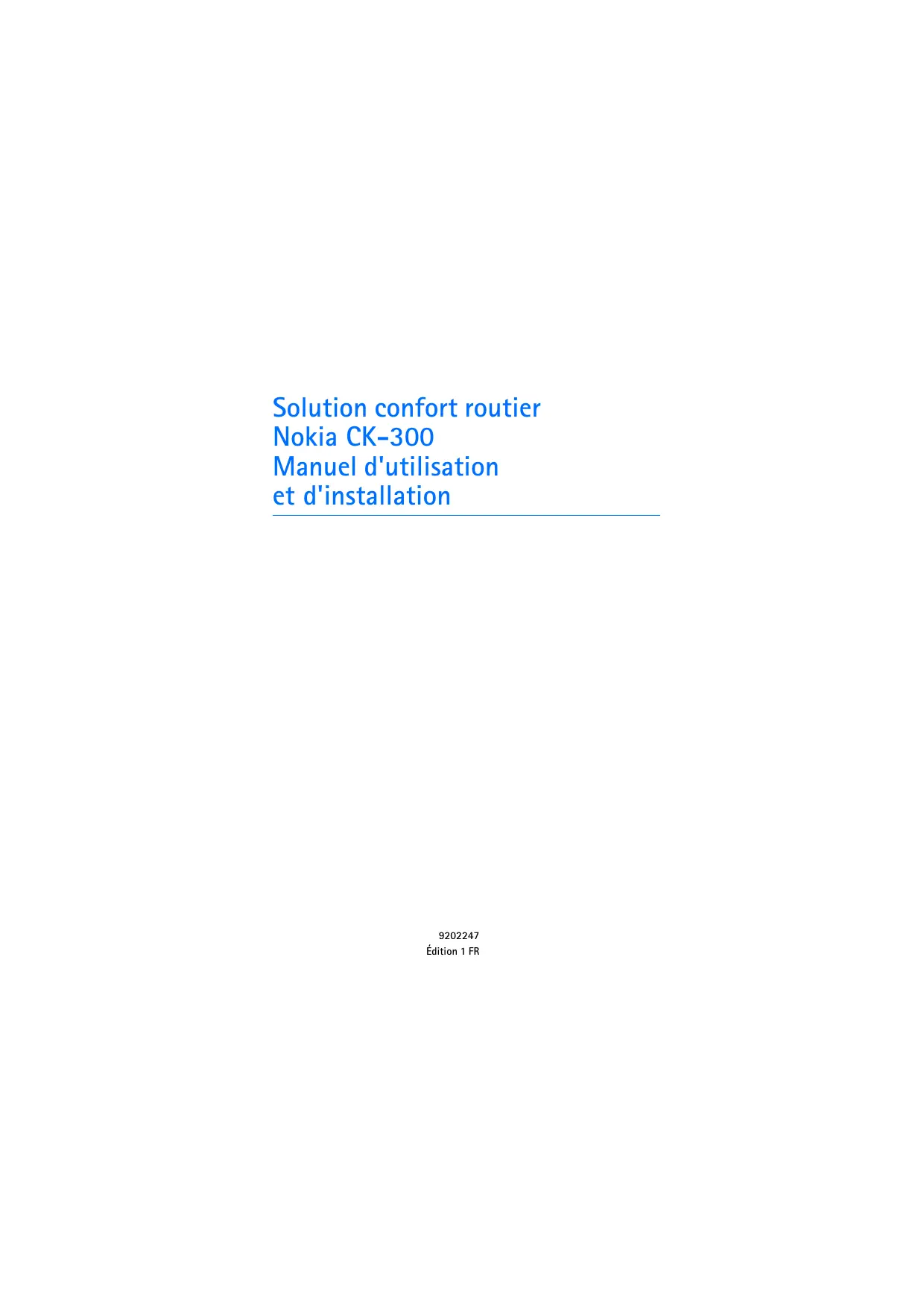 Solution confort routier Nokia CK-300 Manuel d'utilisation et d'installation