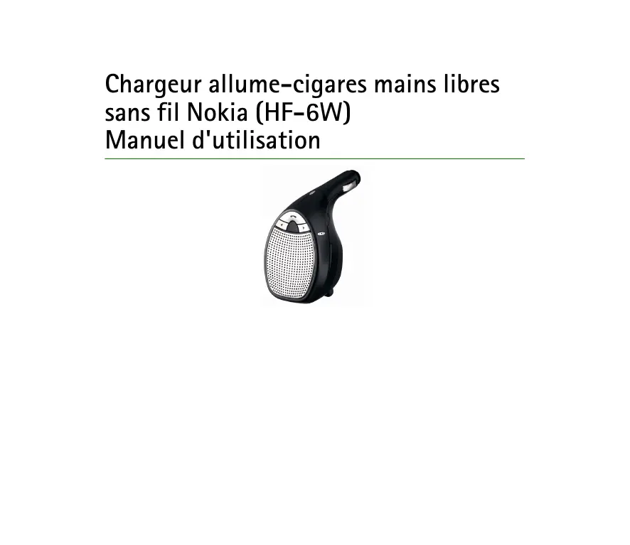 HF-6W - Kit mains libres NOKIA - Notice d'utilisation et mode d'emploi gratuit