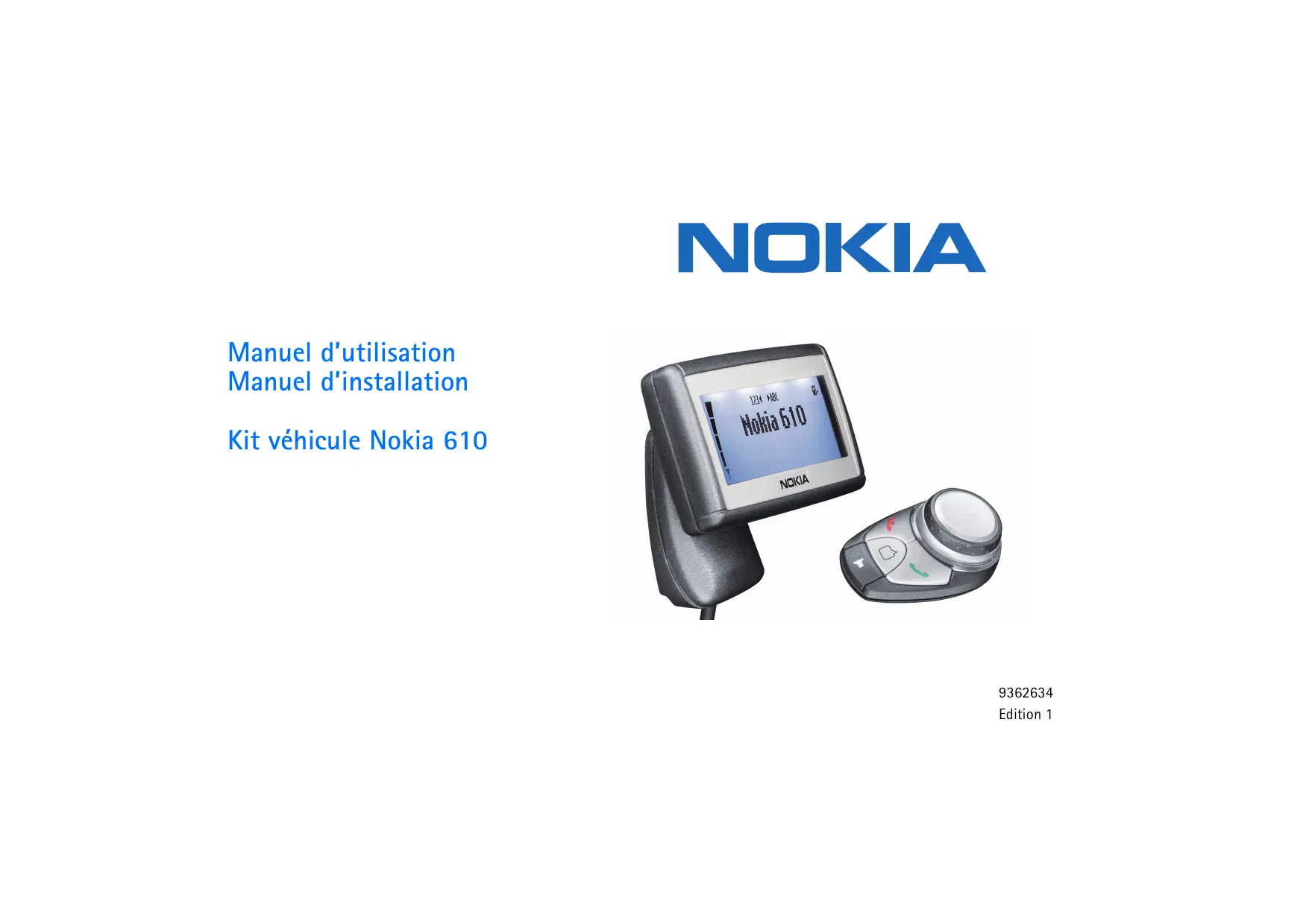 Manuel d’utilisation Manuel d’installation Kit véhicule Nokia 610