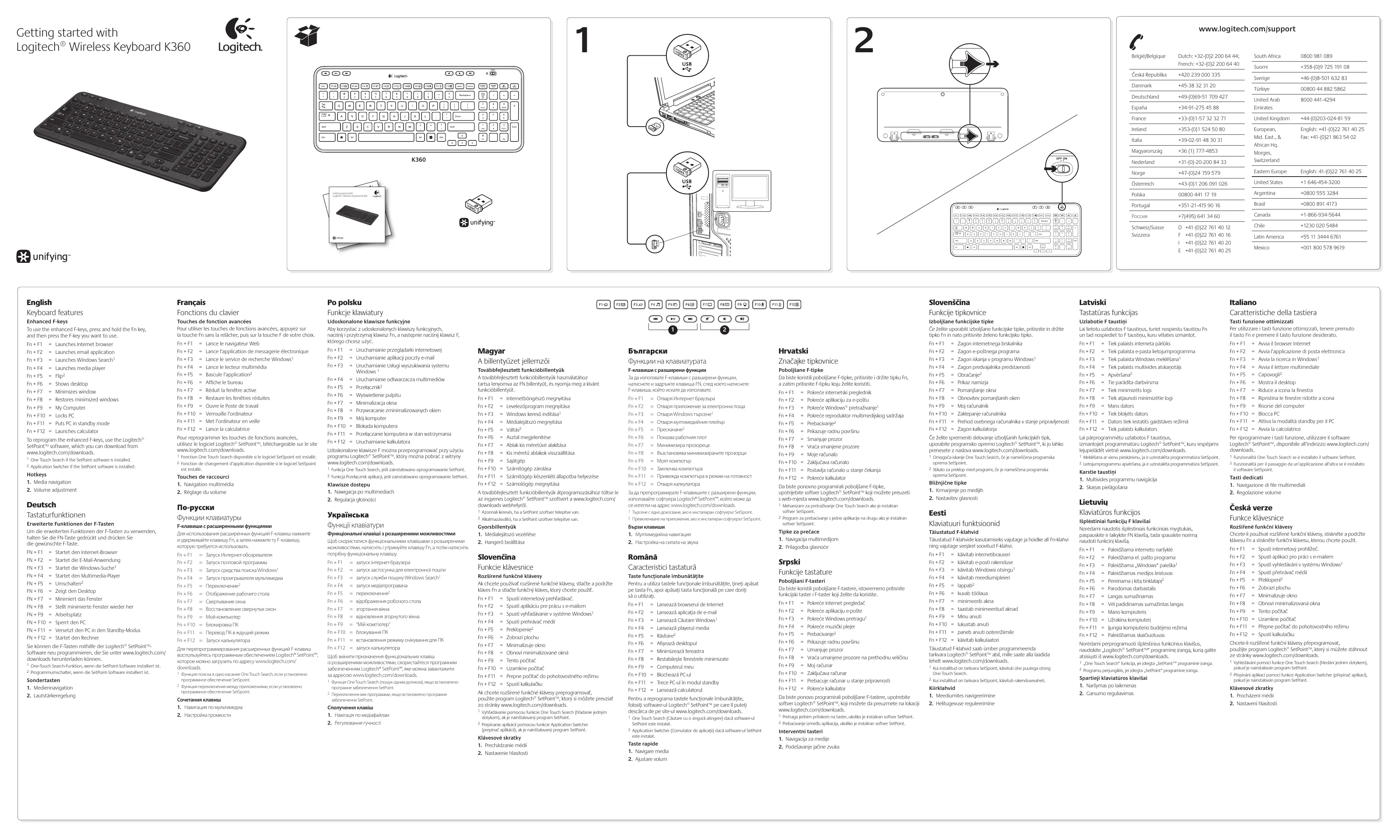 | Fonctions principales | Touches multimédia, raccourcis programmables, technologie de connexion Unifying pour plusieurs appareils. |