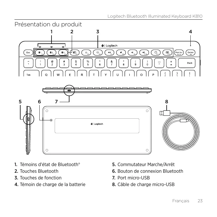 K810 BLUETOOTH ILLUMINATED KEYBOARD - Clavier Bluetooth LOGITECH - Notice d'utilisation et mode d'emploi gratuit