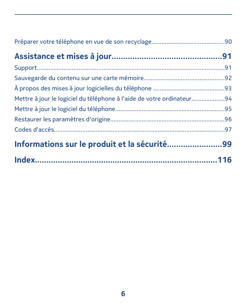 - Préparer votre téléphone en vue de son recyclage p. 90