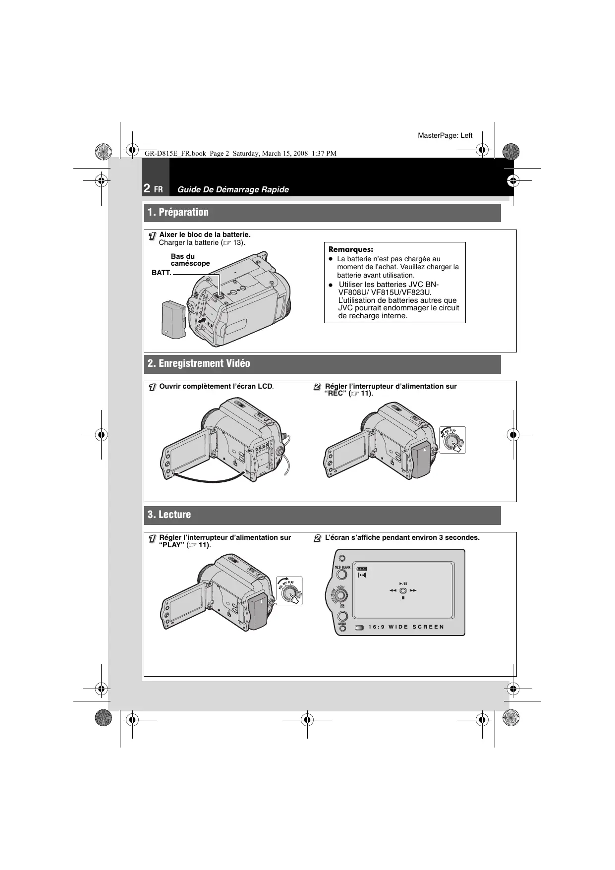 GR-D815E_FR.book Page 29 Saturday, March 15, 2008 1:37 PM Fonctions Pour L'enregistrement