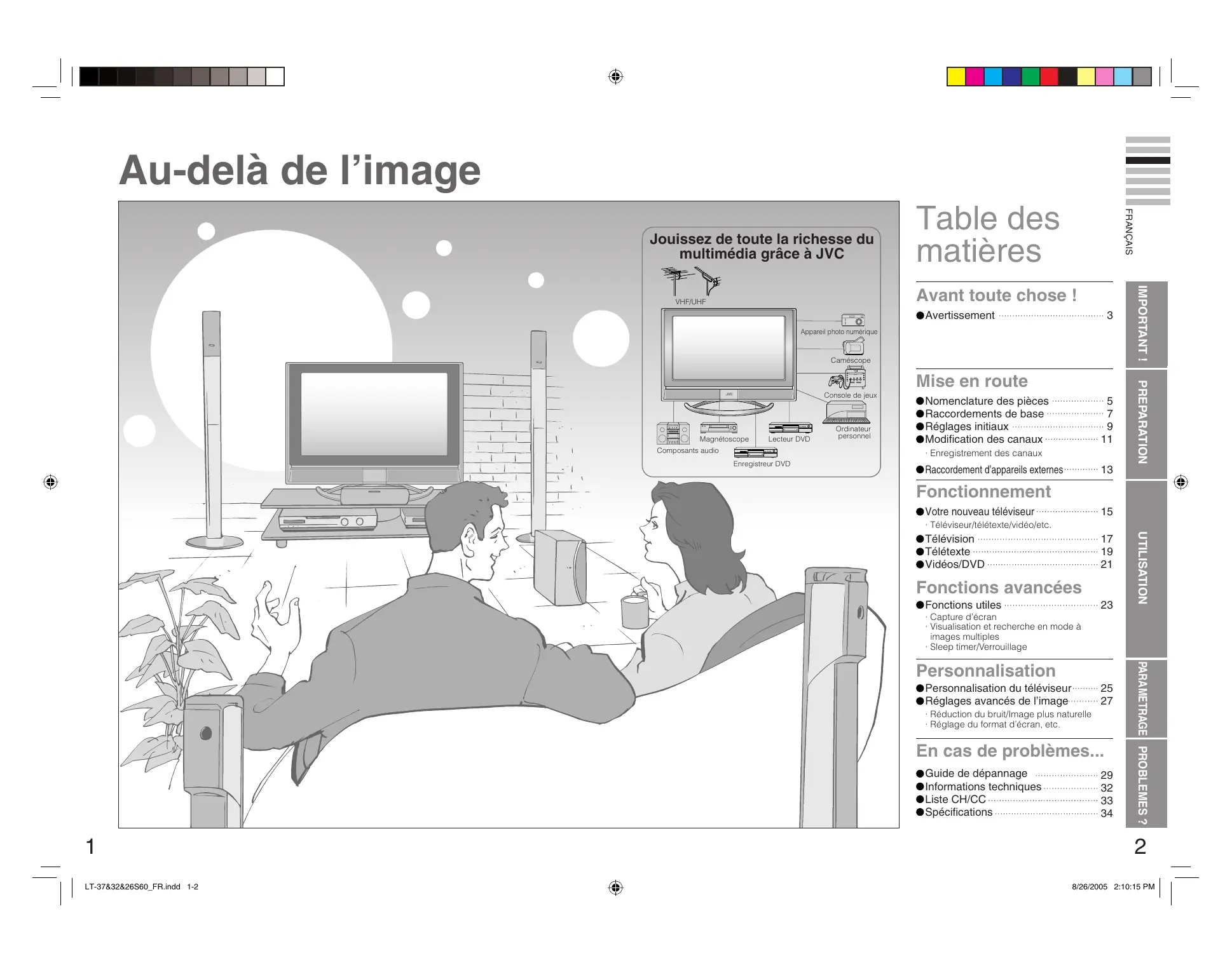 8/9/2005 11:20:00 AM Au-delà de l’image Table des matières FRANÇAIS Jouissez de toute la richesse du multimédia grâce à JVC Avertissement