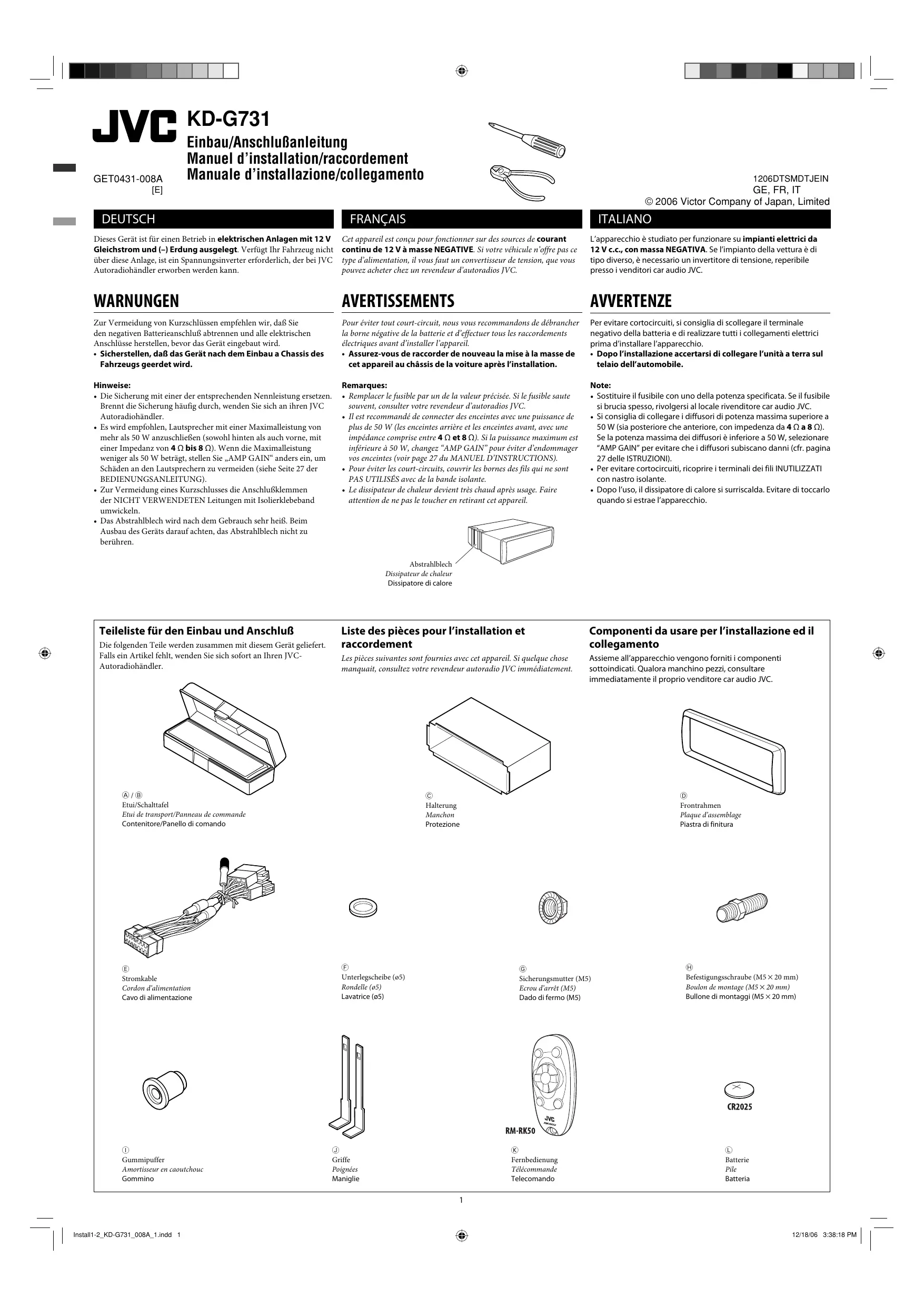 - Haben Sie einen Reset am Receiver vorgenommen? | instalt-2_KD-G731_008A tindd 3 + Le fusible saute.