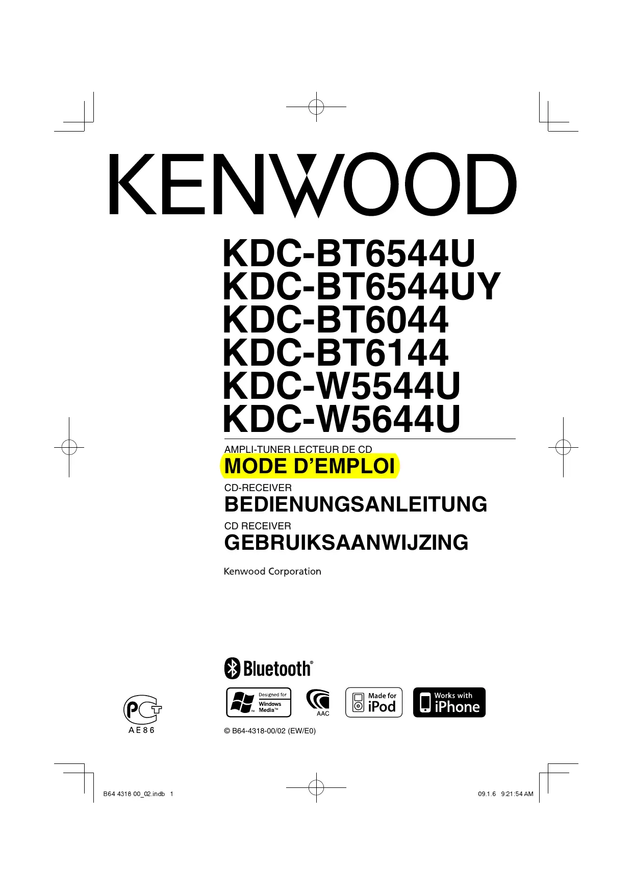 Retrouvez gratuitement la notice de l'appareil KDC-BT6044 KENWOOD au format PDF.