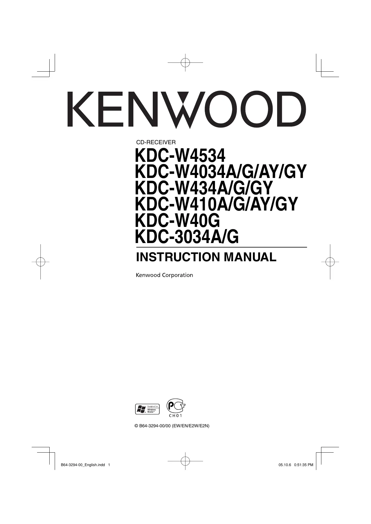 Retrouvez gratuitement la notice de l'appareil KDC-W4034G KENWOOD au format PDF.