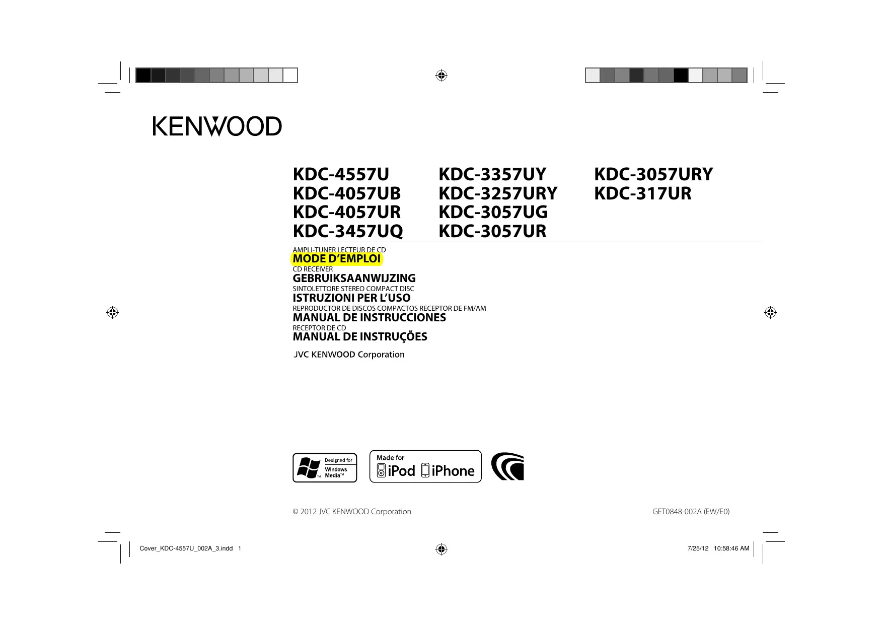 Retrouvez gratuitement la notice de l'appareil KDC-3057UR KENWOOD au format PDF.