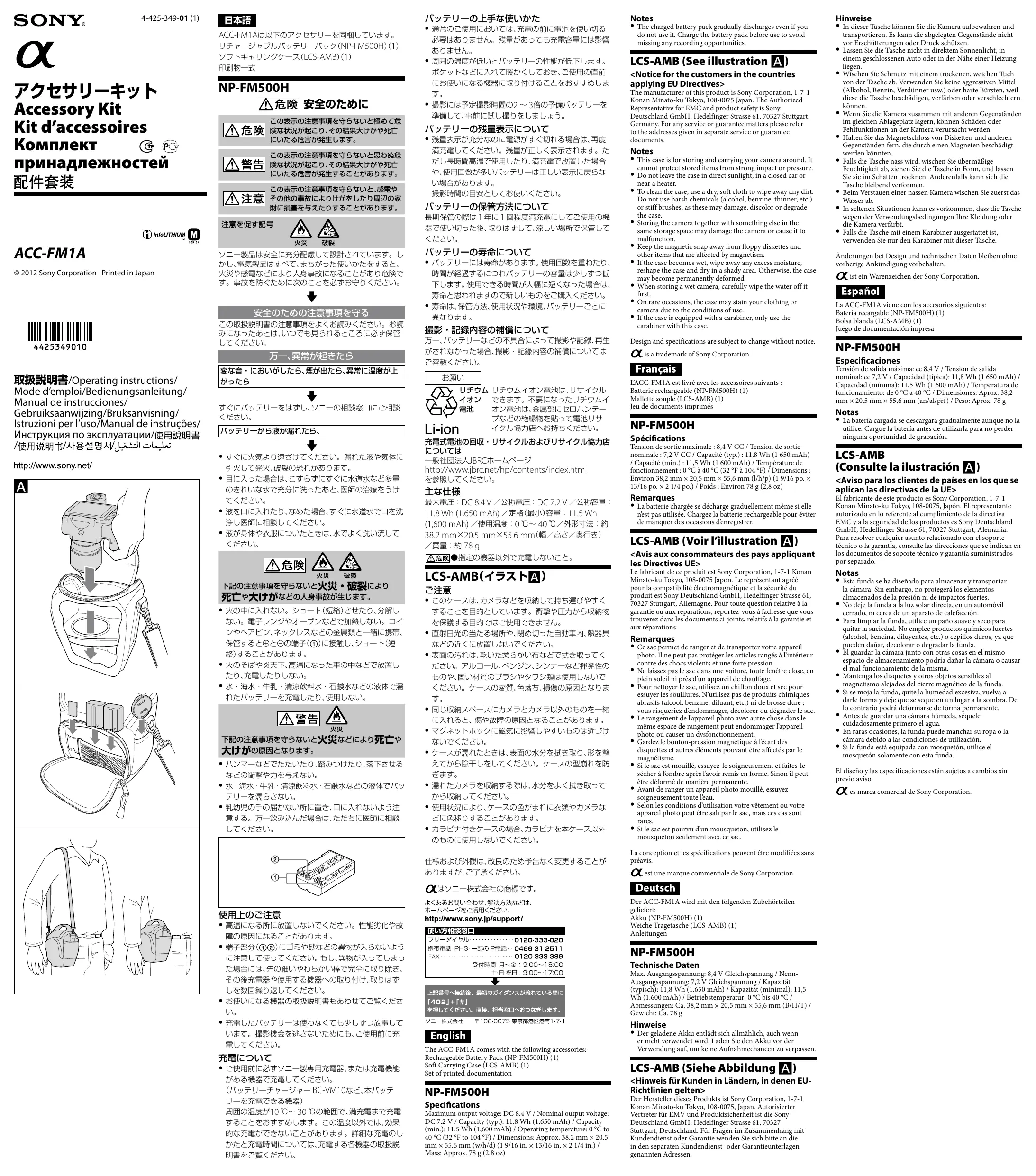 ACC-FM1A - Accessoire pour appareil électronique SONY - Notice d'utilisation et mode d'emploi gratuit