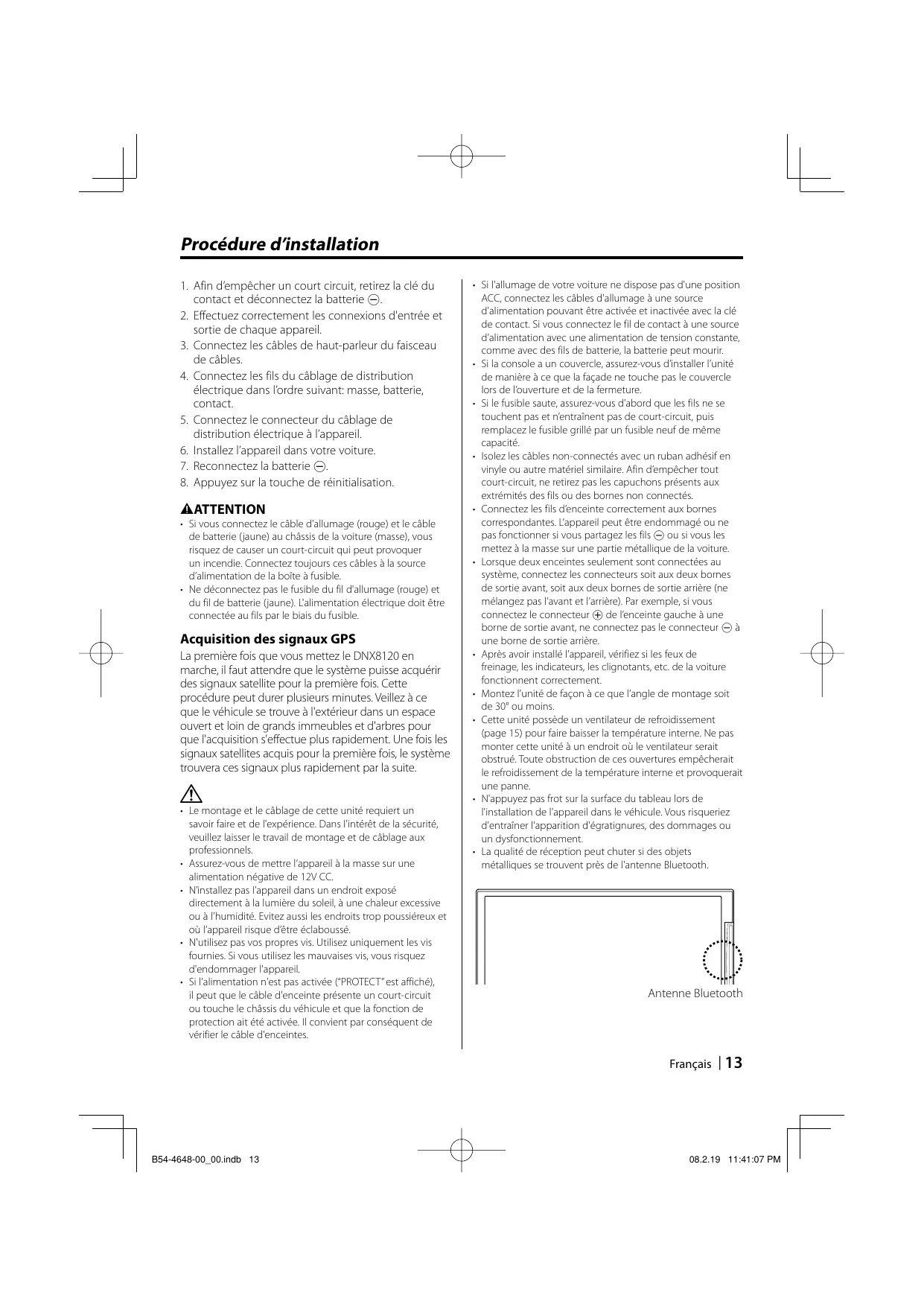 - La qualité de réception peut chuter si des objets métalliques se trouvent près de l'antenne Bluetooth. Antenne Bluetooth Français | 13 B54-4648-00̲00.indb 13