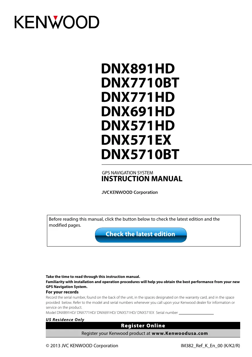 Retrouvez gratuitement la notice de l'appareil DNX5710BT KENWOOD au format PDF.