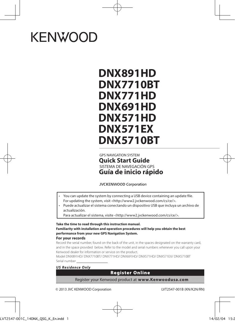 Retrouvez gratuitement la notice de l'appareil DNX7710BT KENWOOD au format PDF.