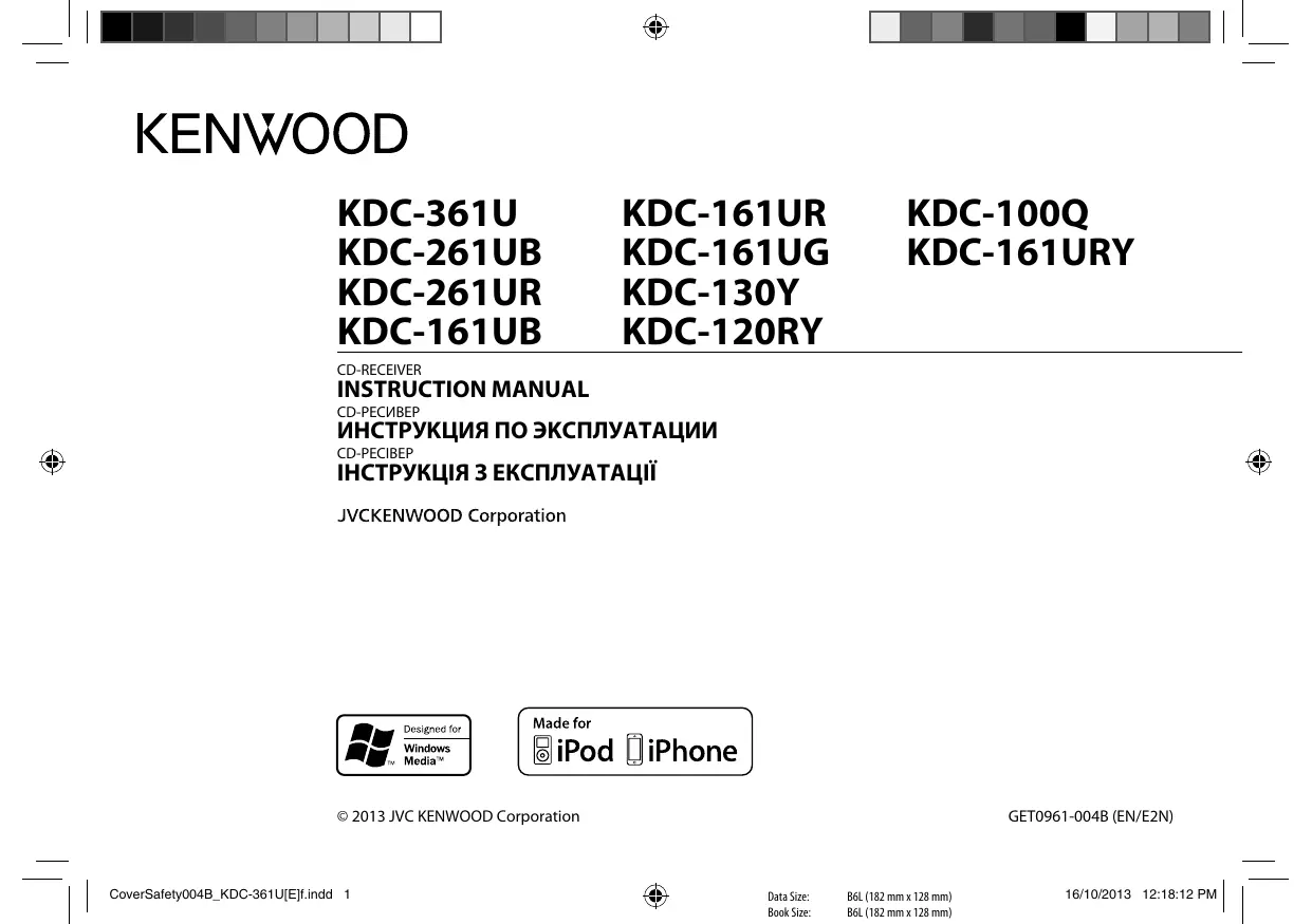 Retrouvez gratuitement la notice de l'appareil KDC-130Y KENWOOD au format PDF.
