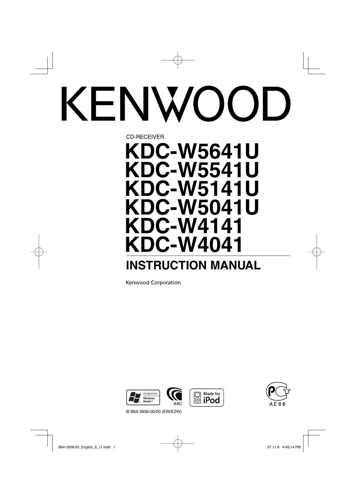 Retrouvez gratuitement la notice de l'appareil KDC-W5041U KENWOOD au format PDF.