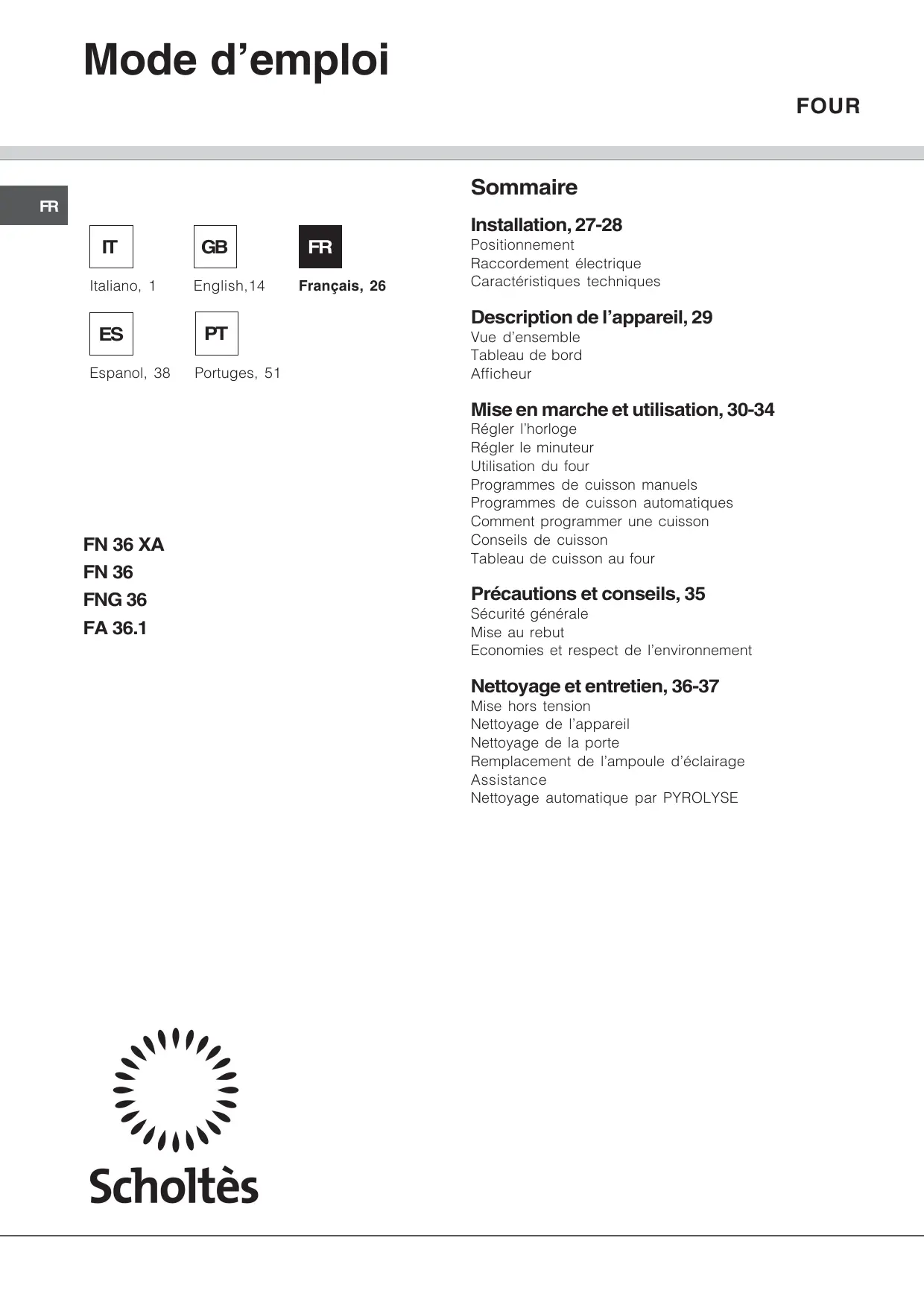 FN 36 XA - Four SCHOLTES - Notice d'utilisation et mode d'emploi gratuit