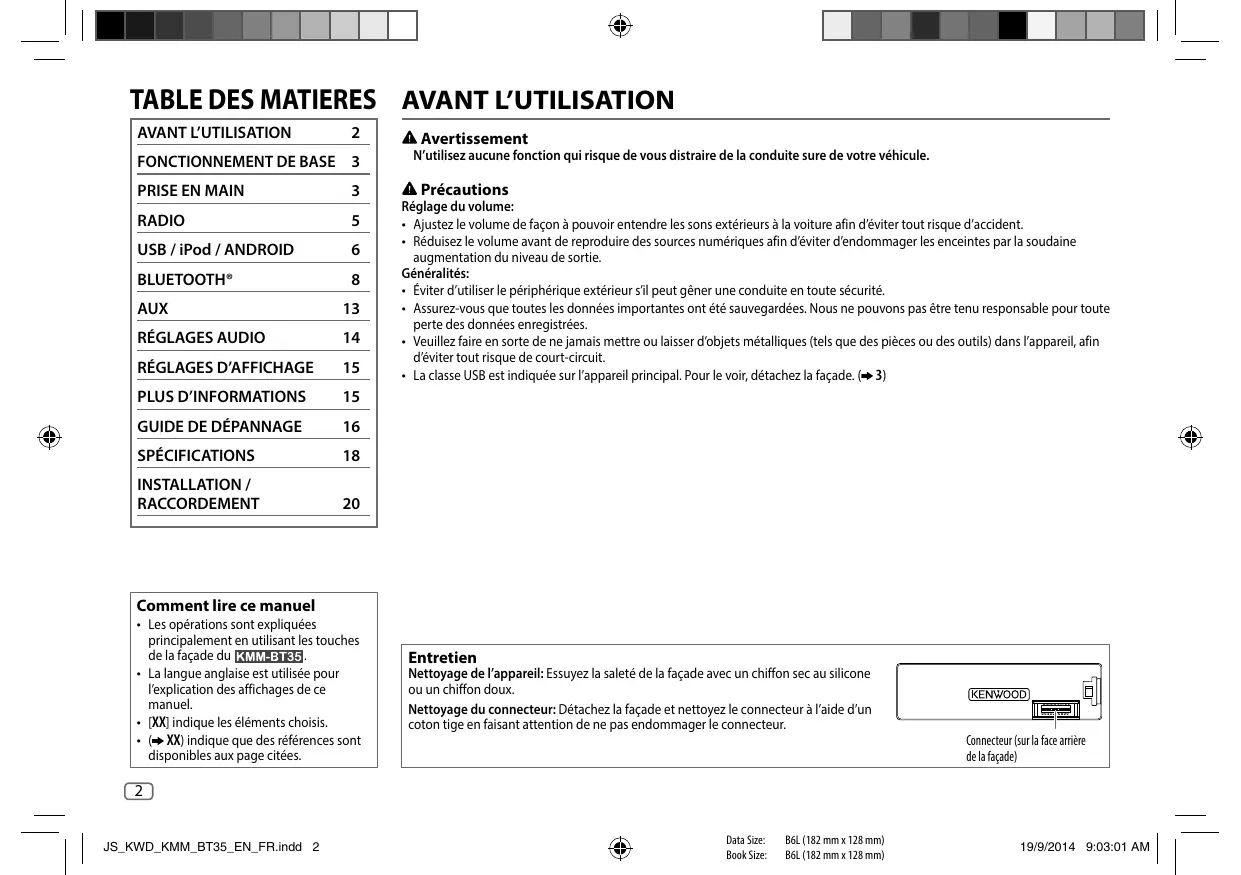 MODE D'EMPLOI KMM-303BT KENWOOD
