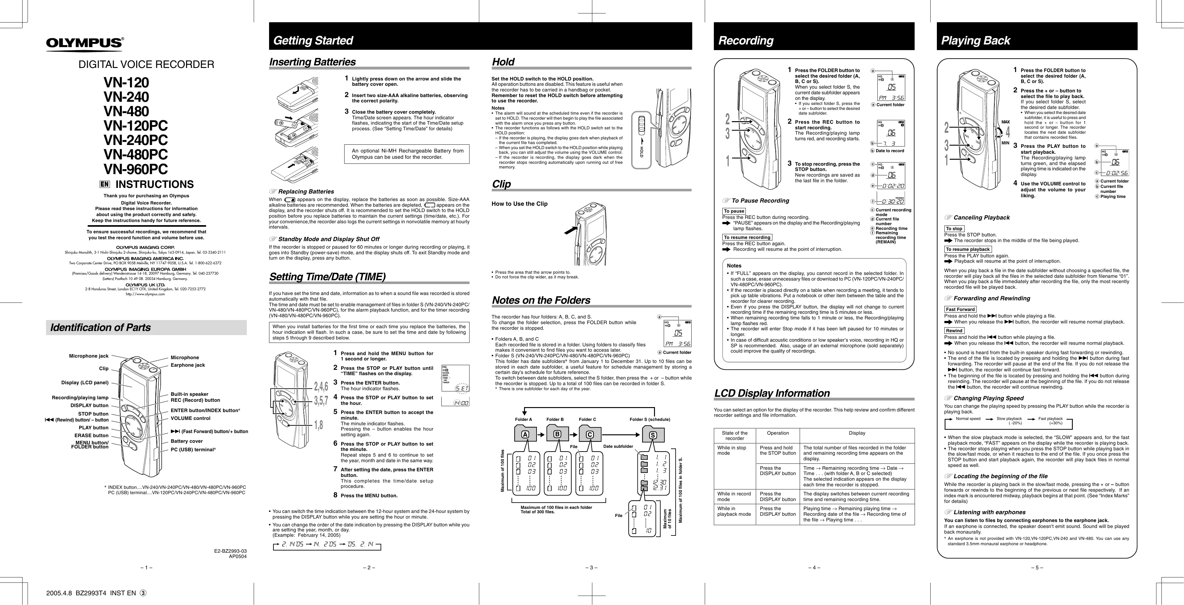 Retrouvez gratuitement la notice de l'appareil VN-960 PC OLYMPUS au format PDF.