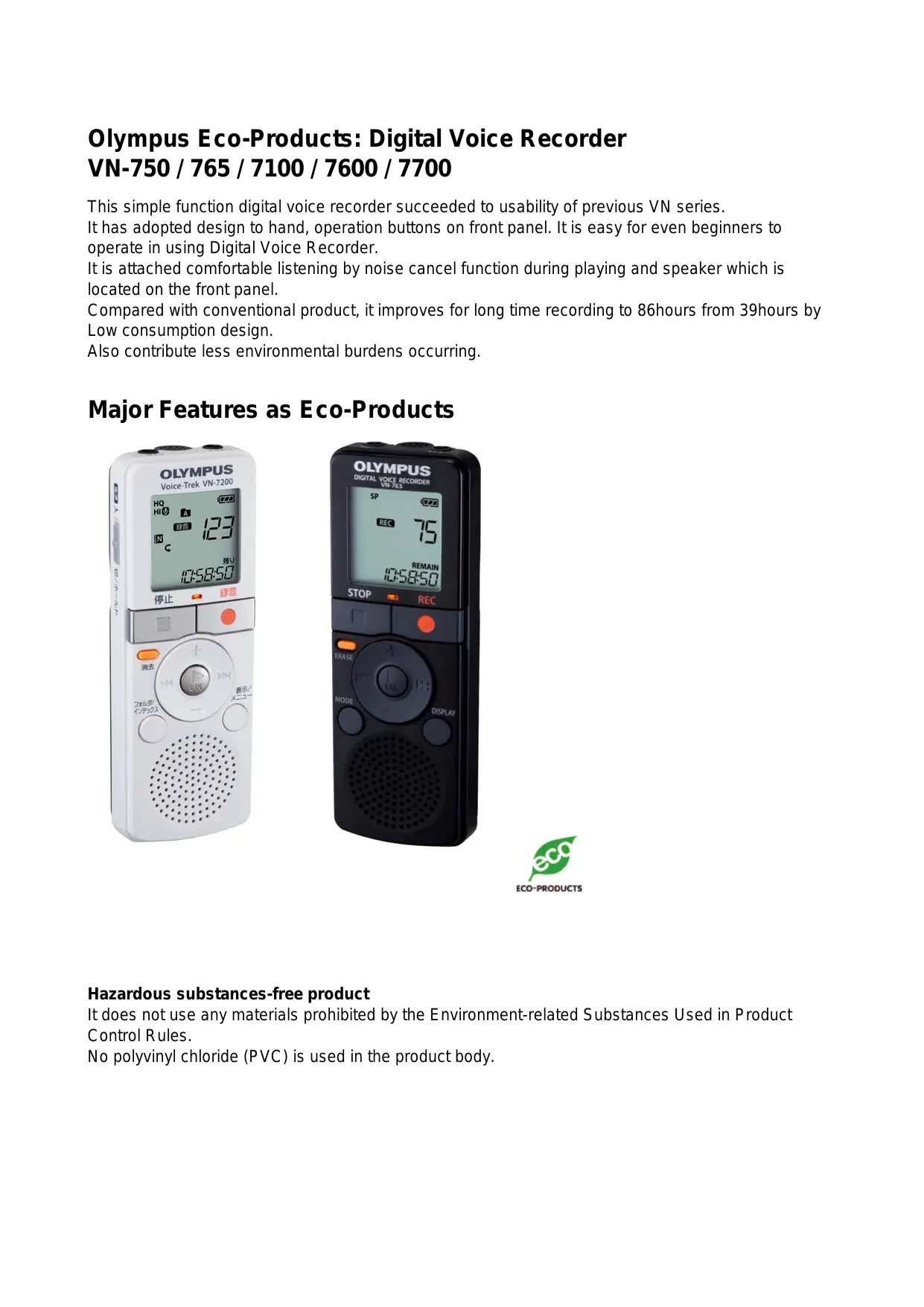 Retrouvez gratuitement la notice de l'appareil VN-765 OLYMPUS au format PDF.