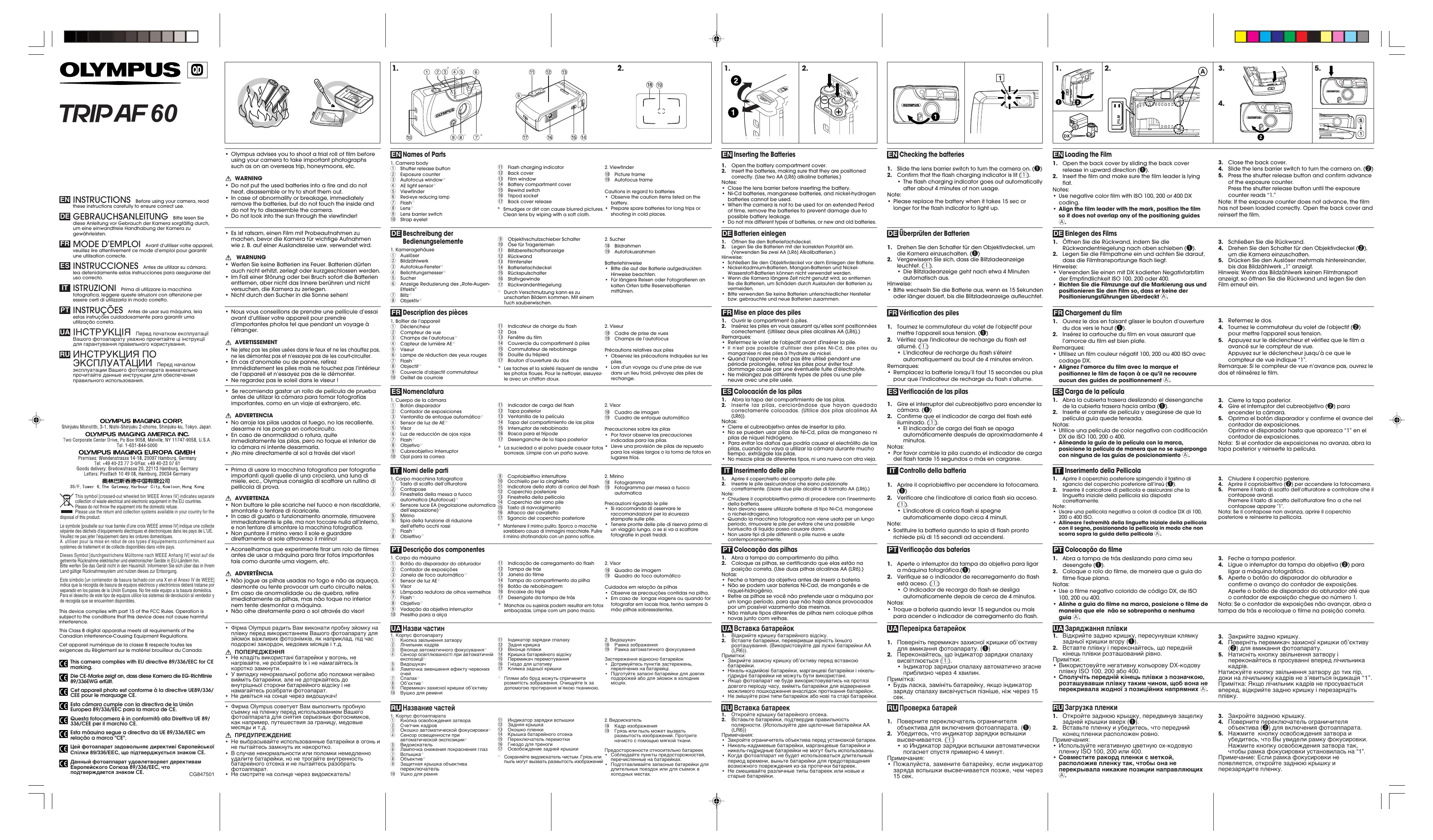 Retrouvez gratuitement la notice de l'appareil TRIP AF 60 KIT OLYMPUS au format PDF.
