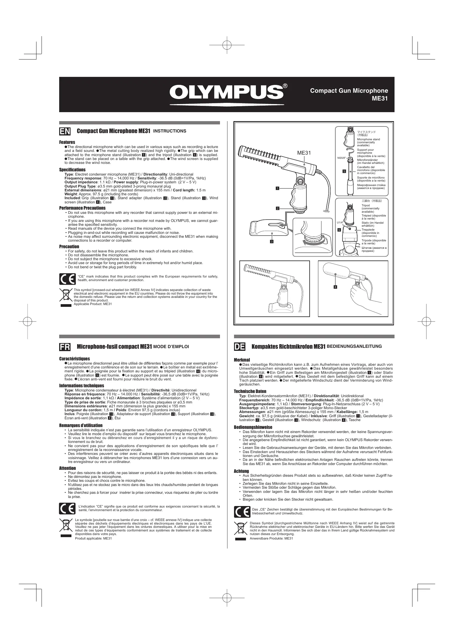 ME-31 - Microphone OLYMPUS - Notice d'utilisation et mode d'emploi gratuit