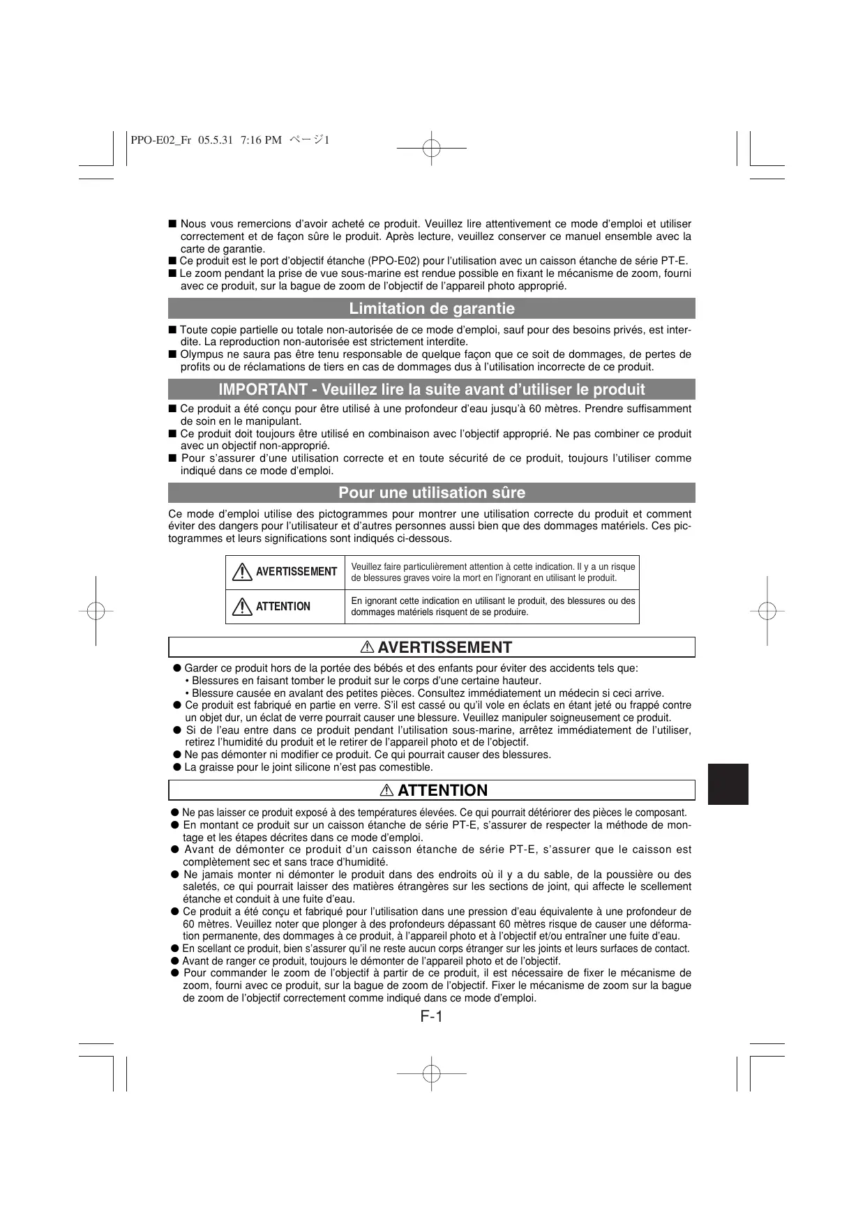 MODE D'EMPLOI PPO-E02 OLYMPUS