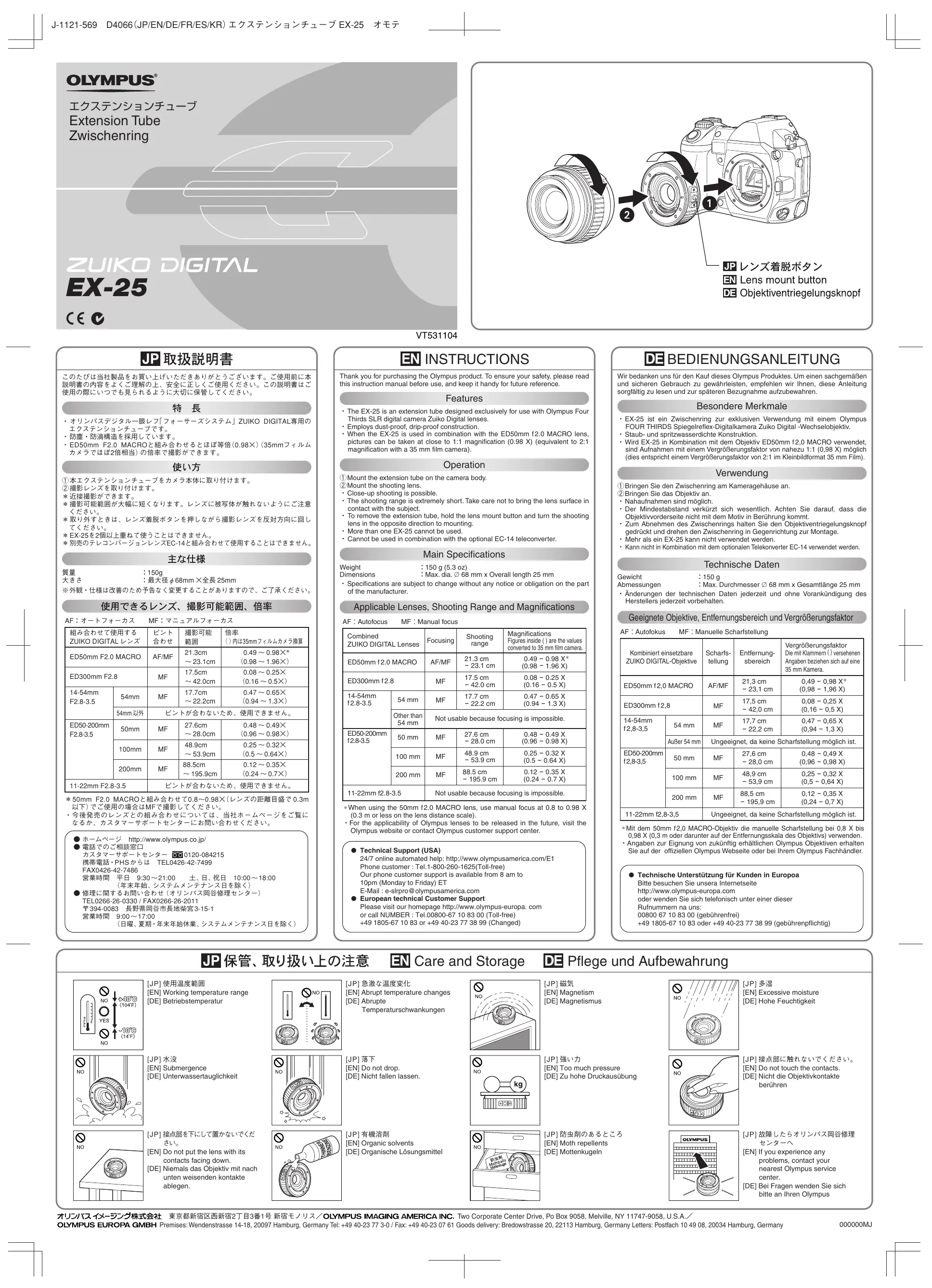 ZUIKO DIGITAL EX-25 - Accessoire d'objectif OLYMPUS - Notice d'utilisation et mode d'emploi gratuit